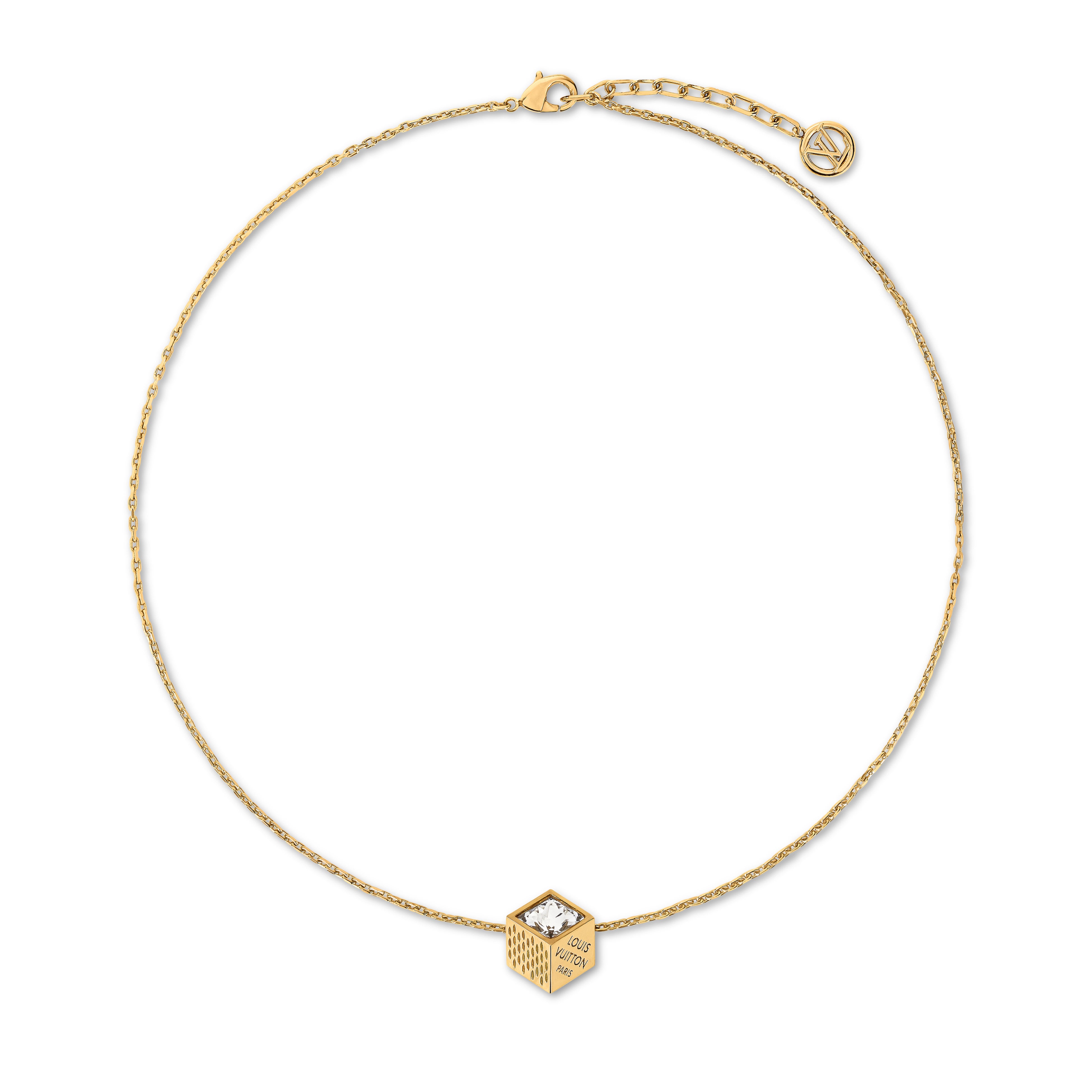 遊び心溢れるデザインで再解釈した「ネックレス·LV キューブ」。中央に配されたダミエ·キャンバスを想起させる彫刻を施したゴールドカラーのメタル製キューブにラインストーンの輝きがアクセントを添えます。「Louis Vuitton Paris」のシグネチャーが、メゾンならではの華やかさを演出する、楽しく魅惑的なアイテム。