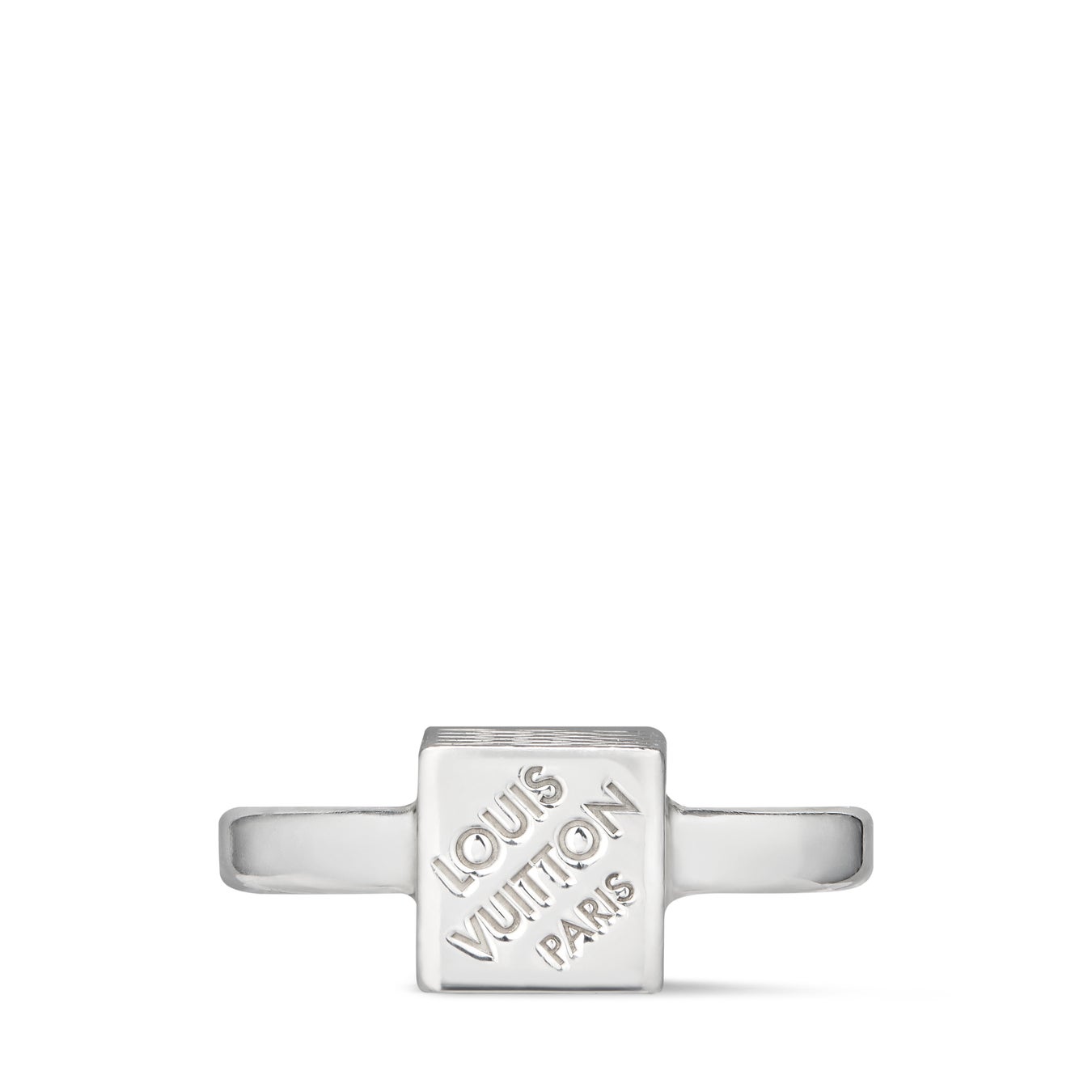スターリングシルバー製の「リング·LV キューブ シルバー」。中央に配したキューブには、伝統的なダミエ·キャンバスを想起させる繊細なラインと「Louis Vuitton Paris」のシグネチャーをエレガントに刻印。あらゆる装いにアイキャッチーなアクセントを添えます。