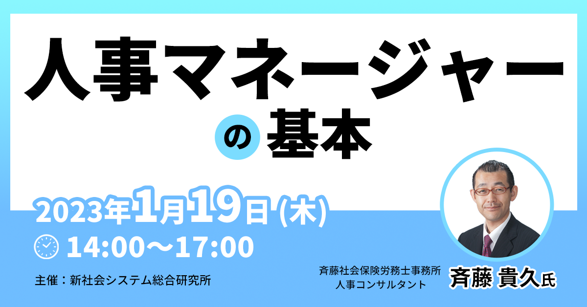 「人事マネージャーの基本」と題して、斉藤社会保険労務士事務所 人事コンサルタント 斉藤 貴久氏によるセミナーを2023年1月19日(木)に開催!!