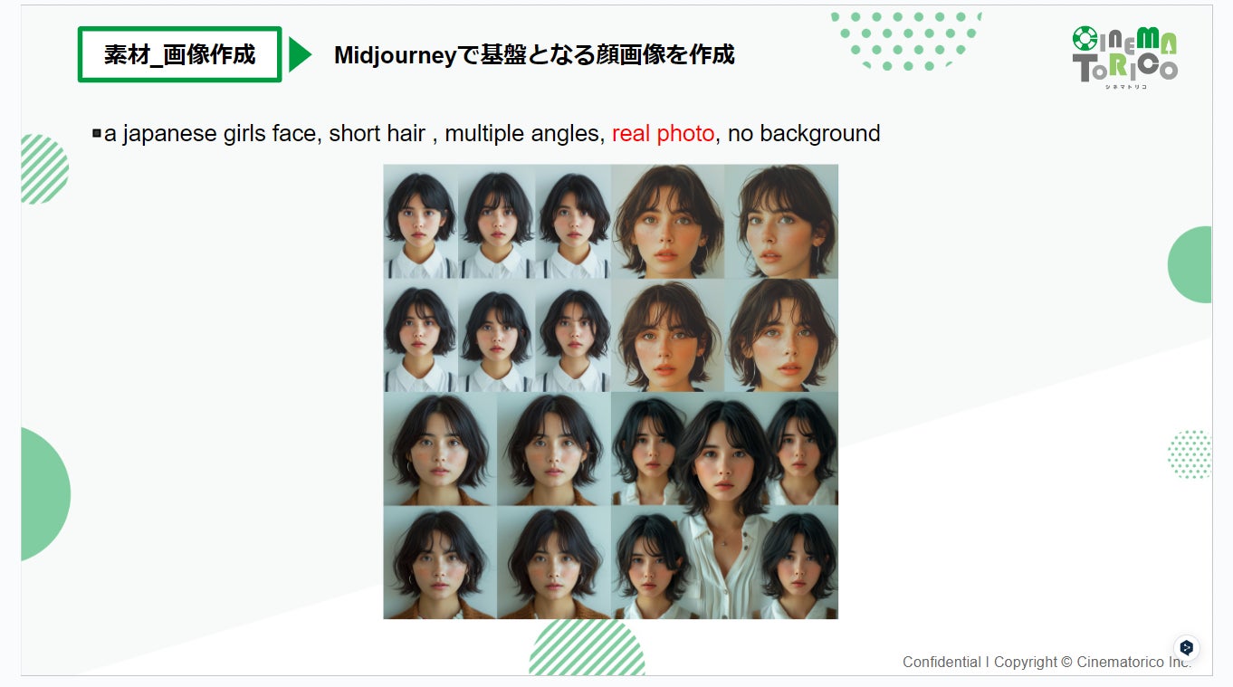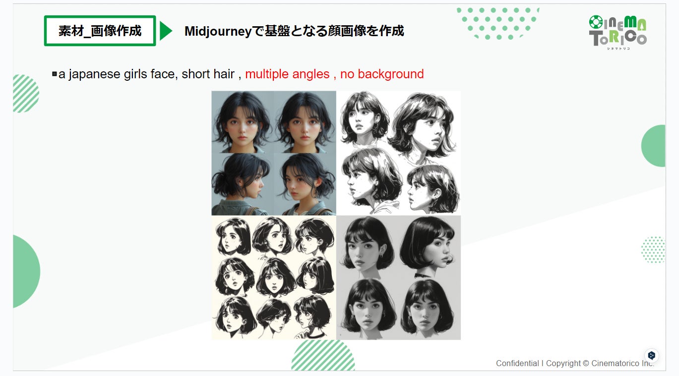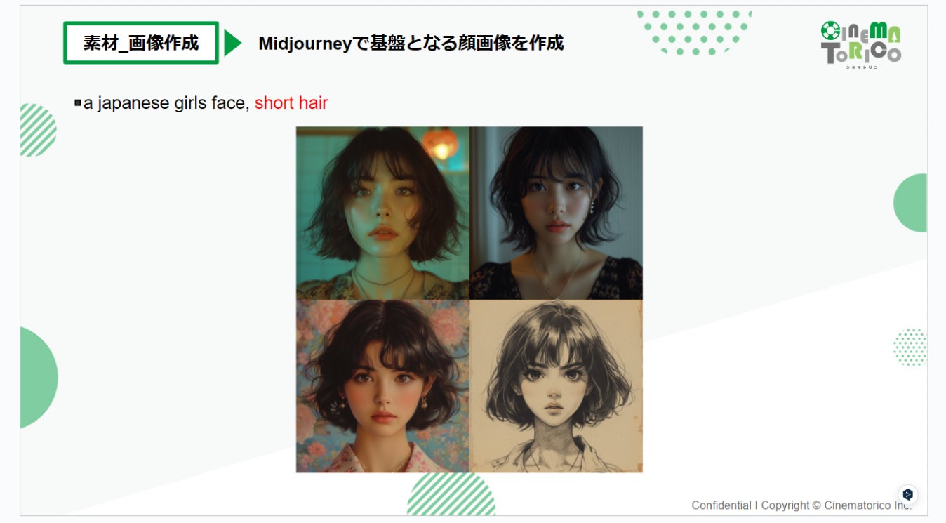 最初に入力した「a japanese girls face」に「short hair」を足してみます。