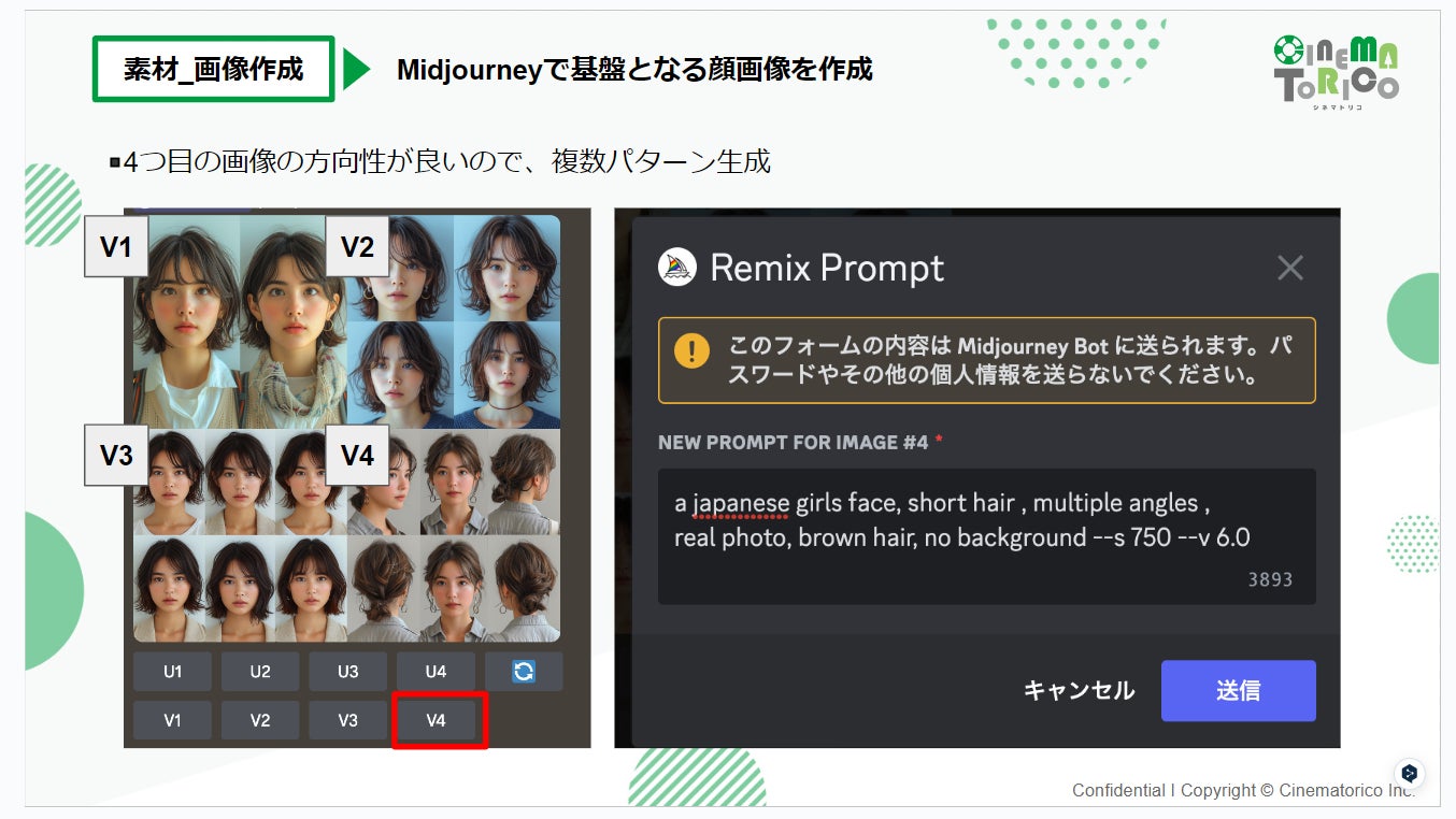 少し顔がアップすぎるので、髪の毛の指示を出して、顔がよく見えるようにしてみます。