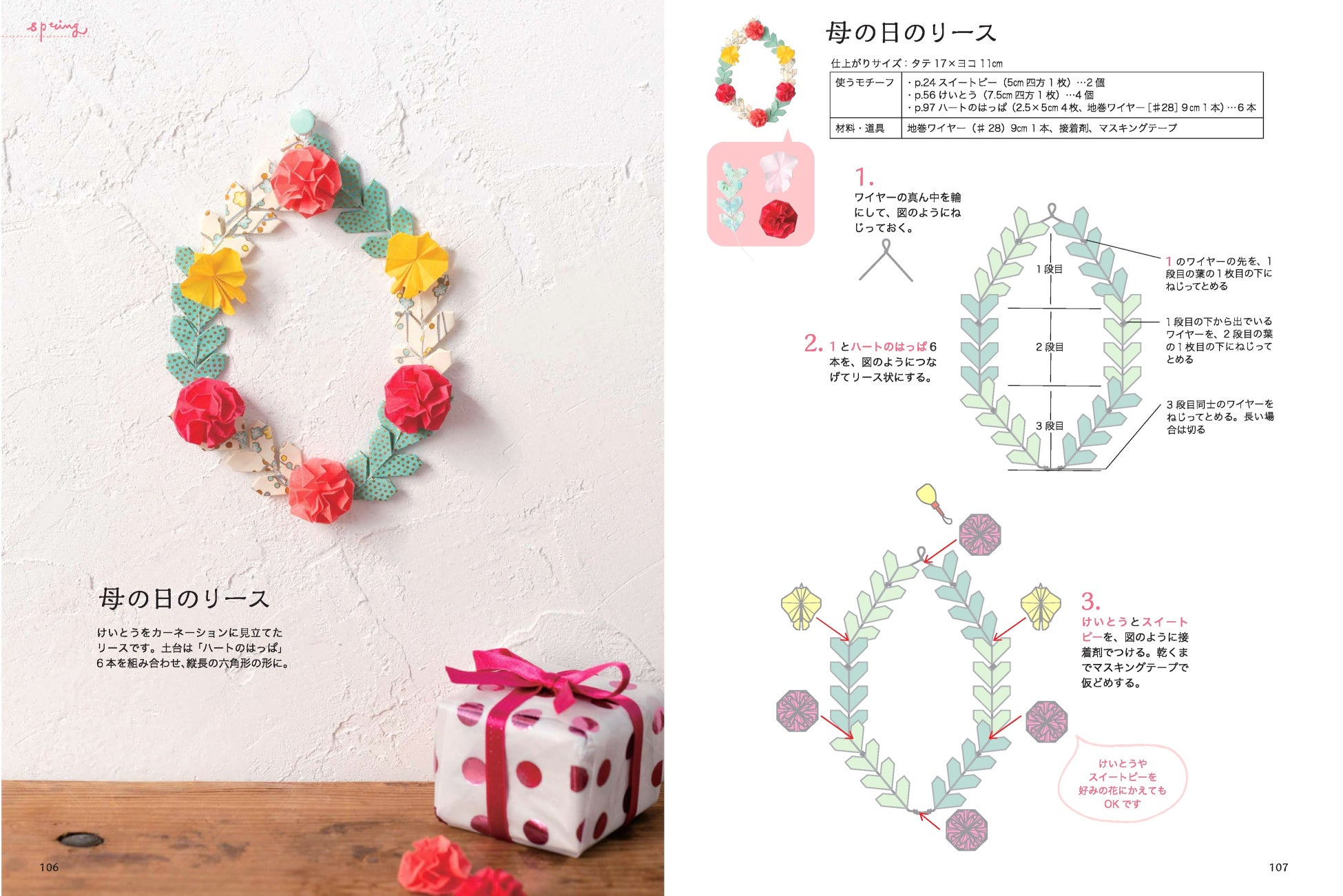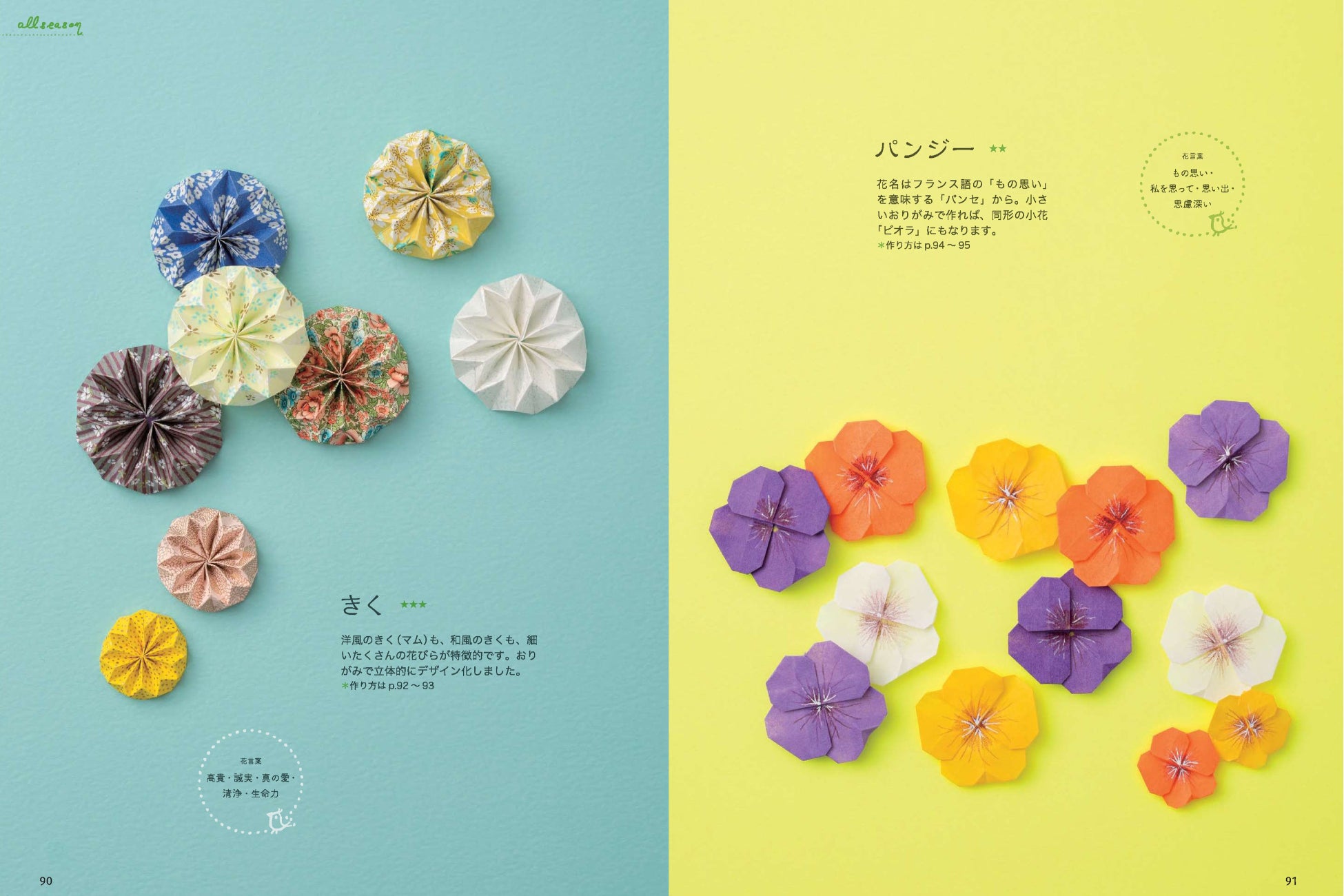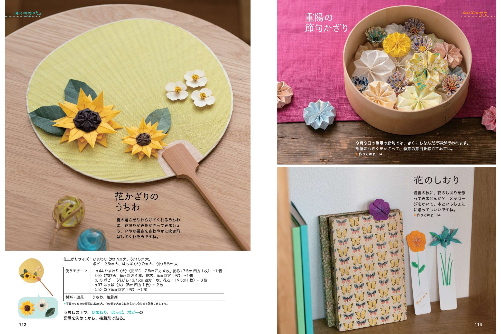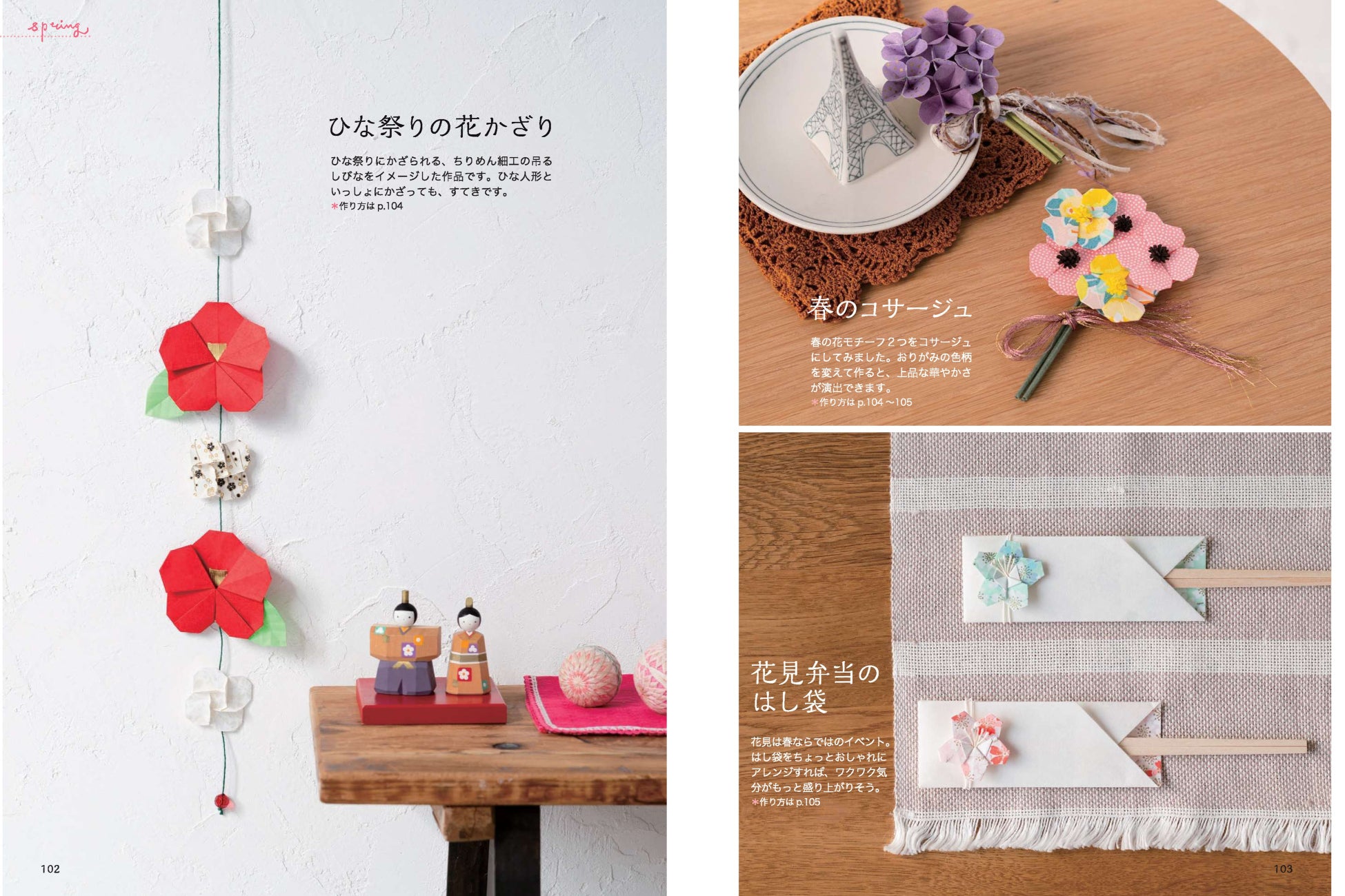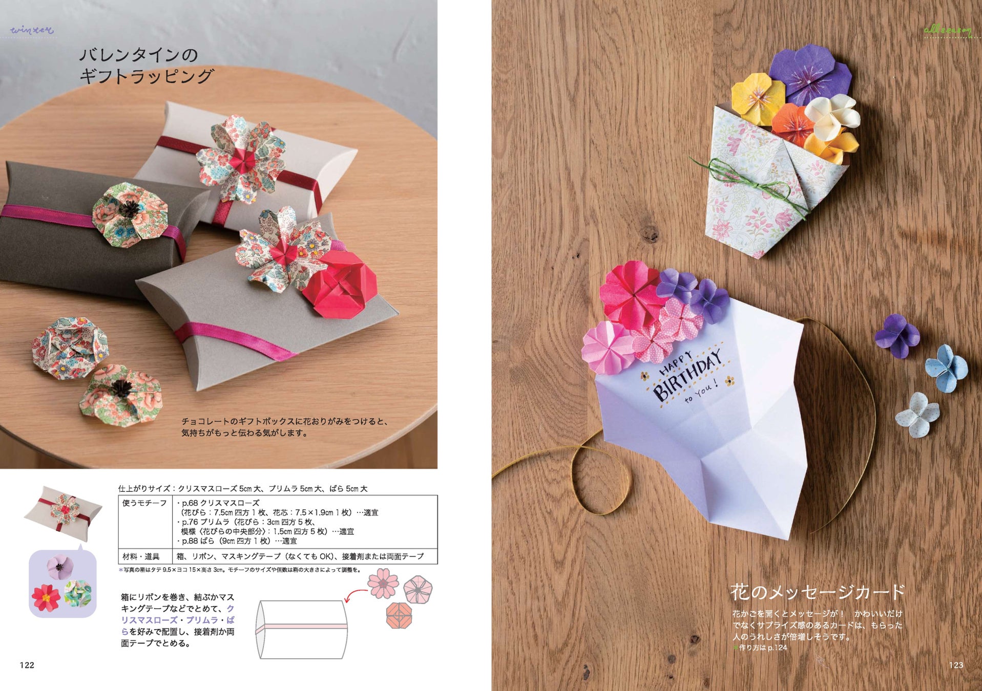 折った作品を使った、季節のイベントを盛り上げる飾り、テーブルデコレーション、アクセサリー、紙小物などのアイデア&作り方も掲載。カードやプレゼント飾り、ブーケなどに使えば、ギフトにもぴったり!