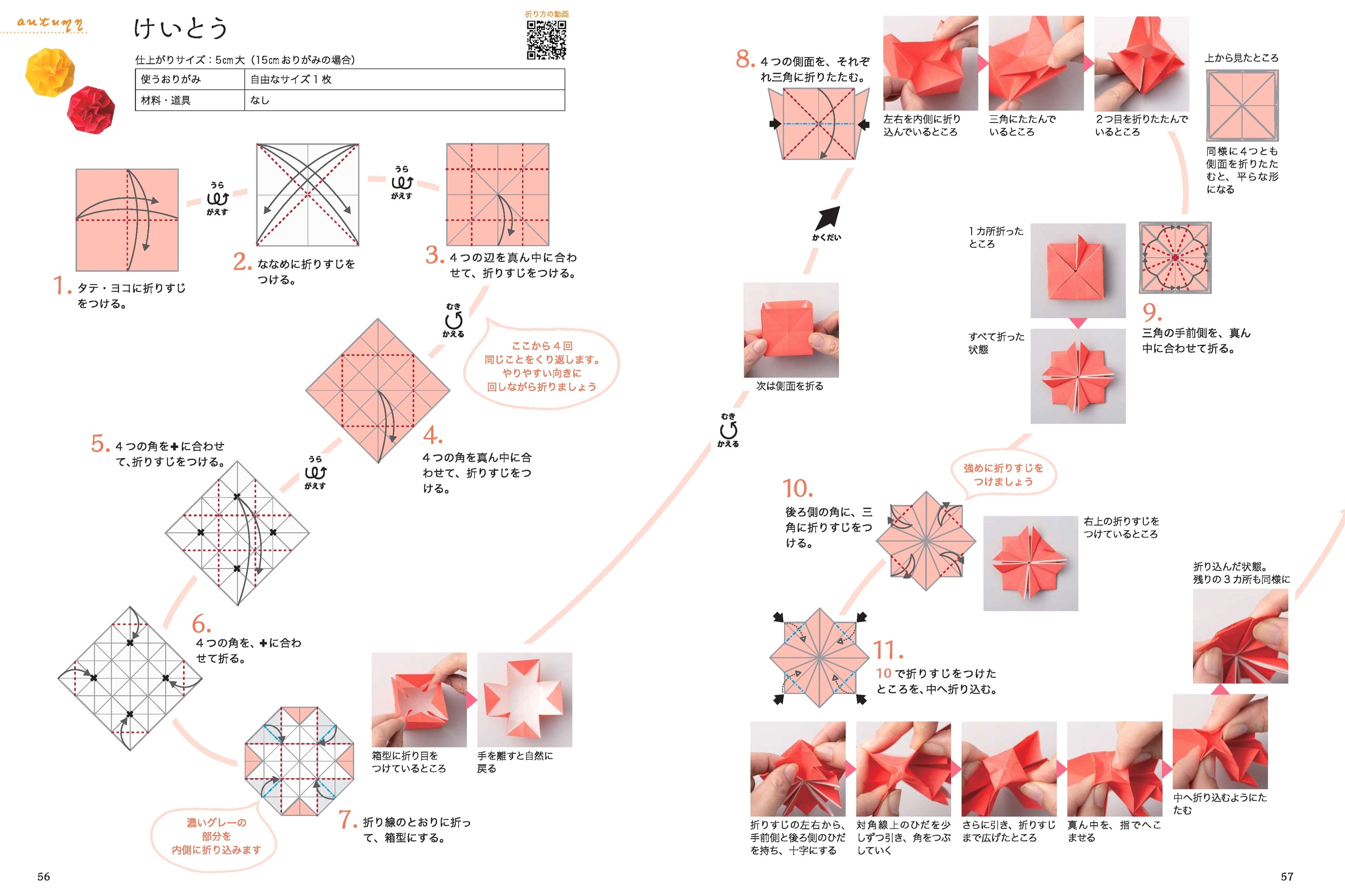 折り図にはきめこまかなアドバイスつき。ポイント箇所には写真での解説もあり、するすると折れます。