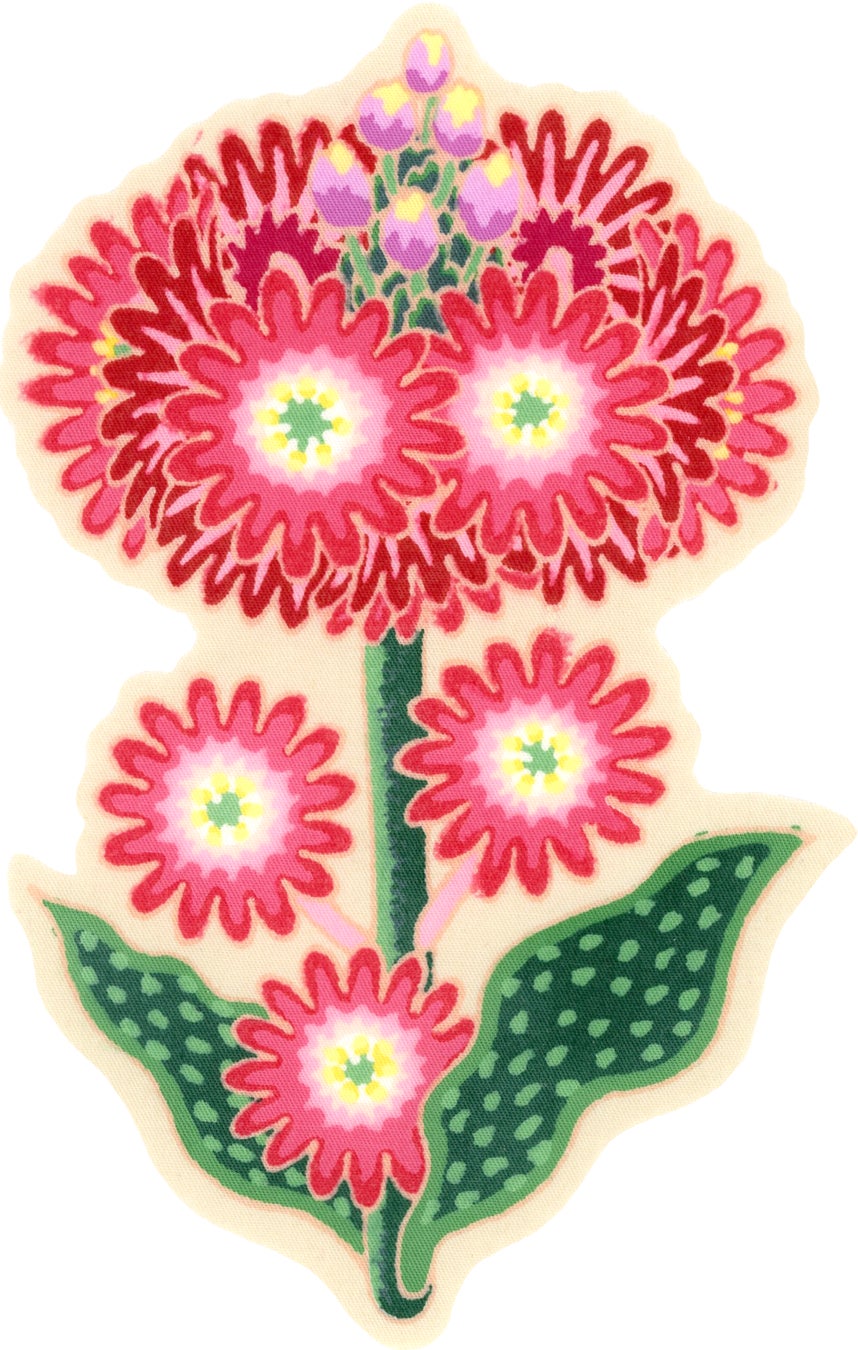 なかむら⽒は、⼯程のほぼ全てを⾊糊(⾊⽷⽬・写し友禅)を⽤いた筒描きのみで制作している。
