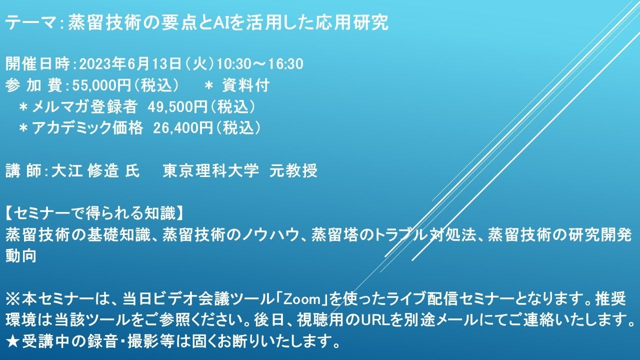 【ライブ配信セミナー】蒸留技術の要点とAIを活用した応用研究 6月13日(火)開催 主催:(株)シーエムシー・リサーチ