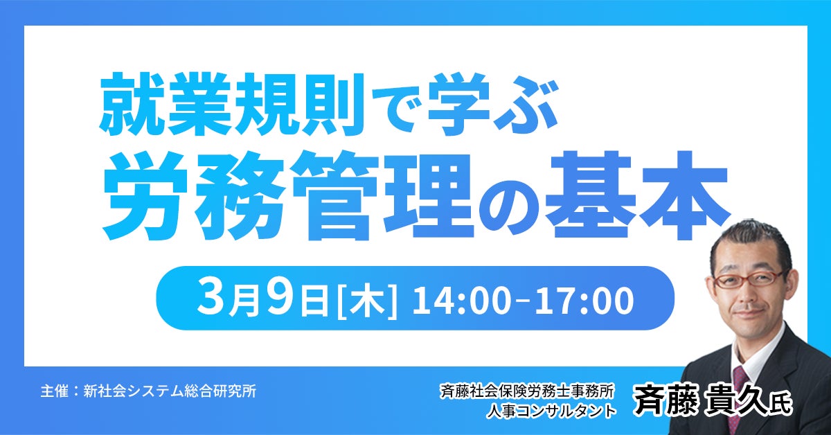 「就業規則で学ぶ労務管理の基本」と題して、斉藤社会保険労務士事務所 人事コンサルタント 斉藤 貴久氏によるセミナーを2023年3月9日(木)に開催!!