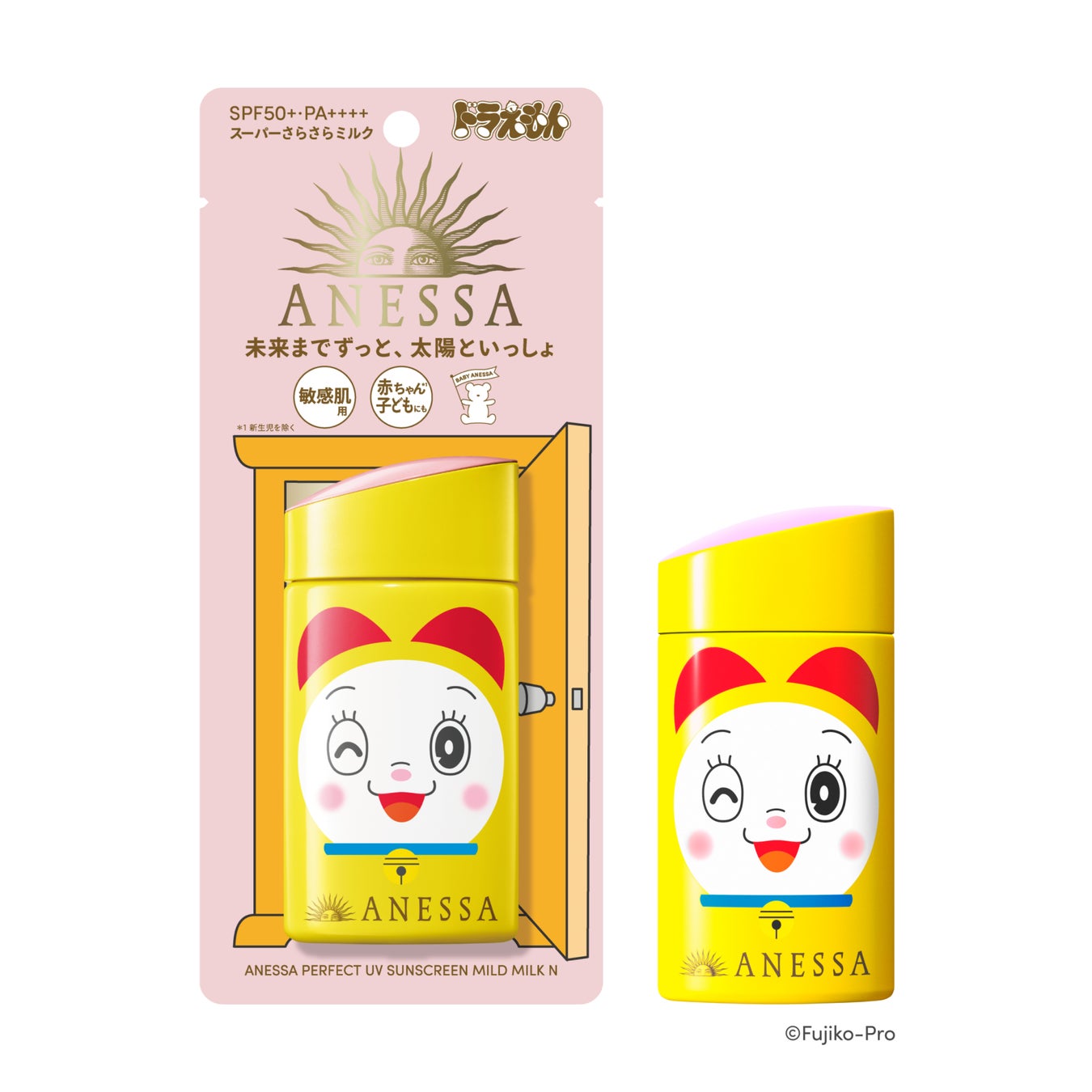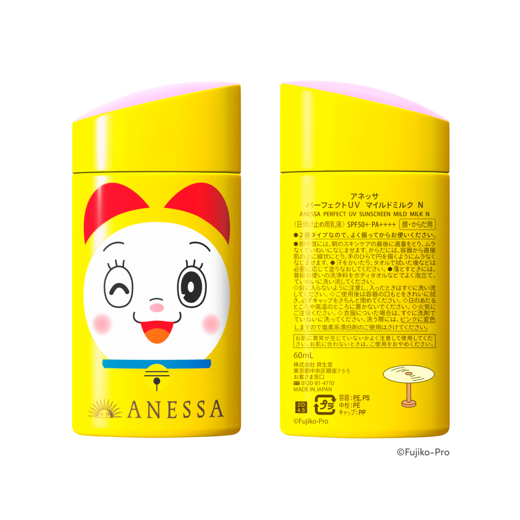 また、「アネッサ パーフェクトUV マイルドミルク N」(60mL)のパッケージには、敏感肌の方や赤ちゃん※1 でも使えるやさしい使い心地であることを伝えるためにドラえもん想いのドラミちゃんが描かれています。