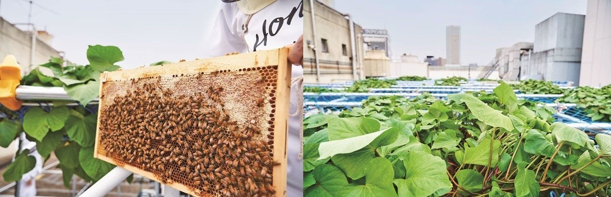 2021年3月に新宿区障害者福祉事業等ネットワーク「しんじゅQuality」と伊勢丹新宿店が農福連携(農業+福祉)のひとつとしてスタートした都市養蜂プロジェクト「MIEL ISETAN SHINJUKU©」では、本年より、ミツバチの巣箱が設置してある施設の屋上の夏の酷暑からミツバチを守るため、さつまいもの葉で日陰を作り、屋上を緑化するプロジェクトも発足いたしました。そこで作られた新宿産さつまいもを使った特別なスイーツも販売いたします。