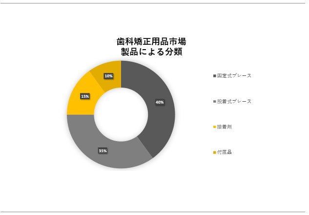 製品別(固定式ブレース、脱着式ブレース、接着剤、付属品)