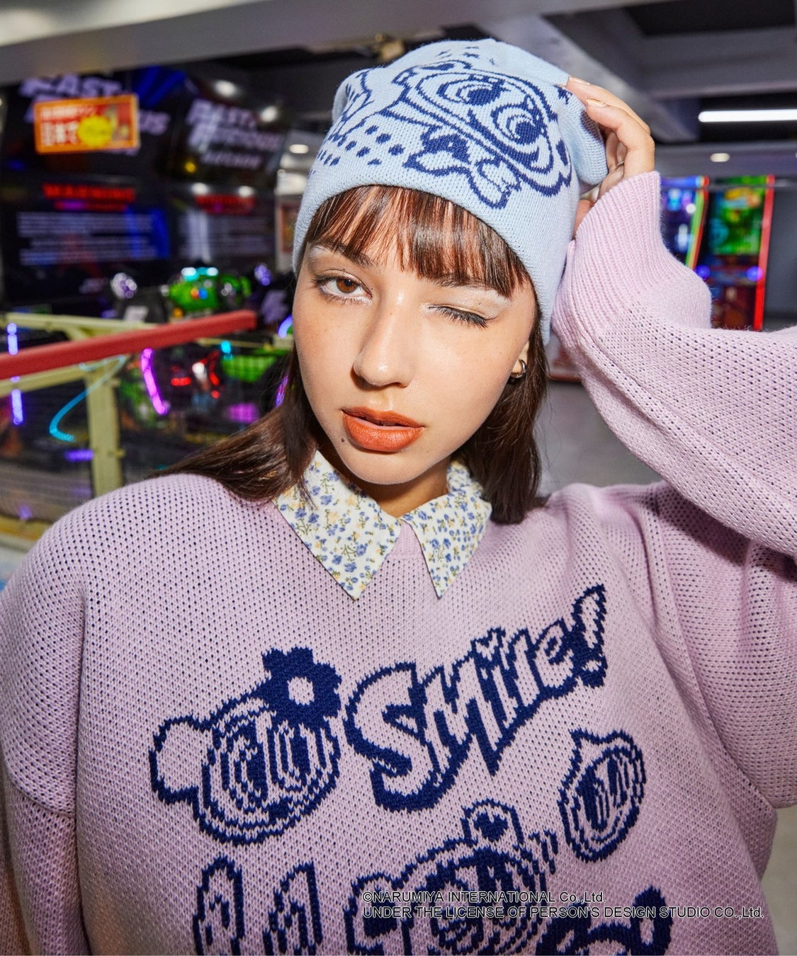 「ANGEL BLUE」35周年を記念して実現した今回のコラボレーション。1989年に誕生し、1990年代から2000年代前半にかけてメインキャラクターである “ナカムラくん” を中心に、小中学生の女の子から人気を博しました。今回のコラボレーションのアイテムは、アパレル3型、雑貨6型の全9型です。前面に ”ナカムラくん“ がプリントされたジャガードニット、短丈シルエットのラグランデザインがポイントのロングTシャツ、”ナカムラくん” や ”ハナちゃん” の実写アートがプリントされたトートバックなど「ANGEL BLUE」らしい可愛さ、かっこよさのエッセンスがたくさん詰まっています。