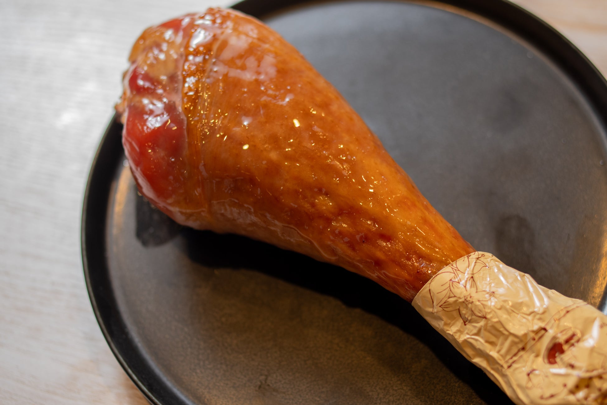スモークの風味付けをした後に真空調整で仕上げたやわらかいターキーレッグです。
