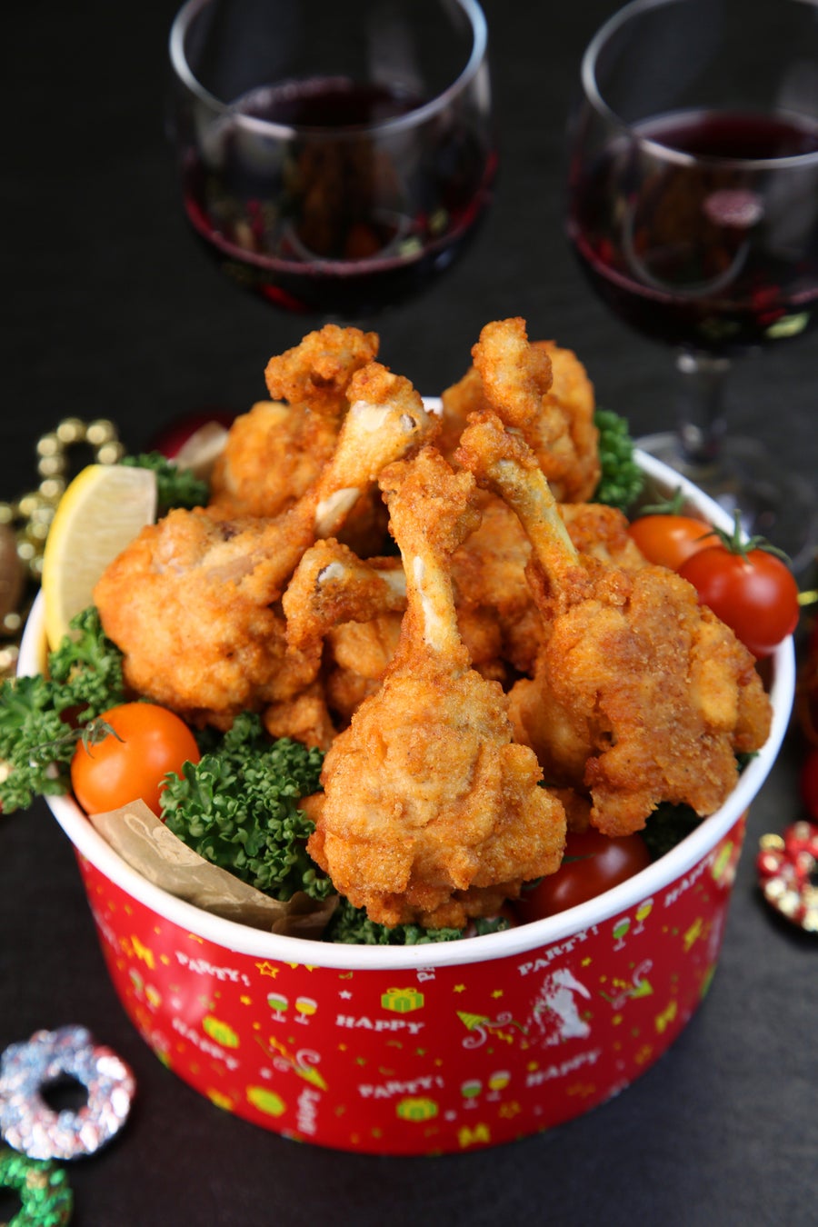 クリスマスの定番、フライドチキンを贅沢に盛り合わせにした一品です。