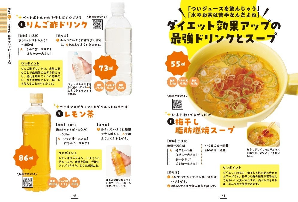 材料にお湯注ぐだけの「梅干し脂肪燃焼スープ」に「リンゴ酢ドリンク」
