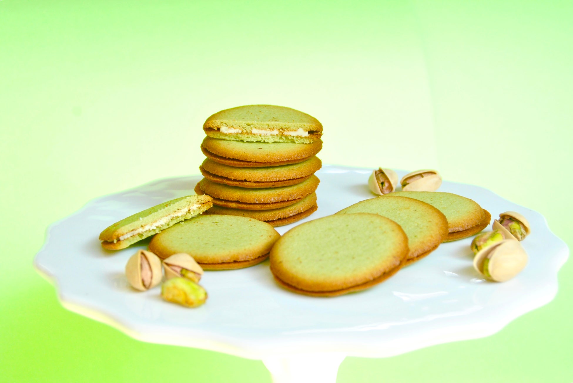 アメリカ産ピスタチオのペーストとパウダーを練り込んだ生地でホワイトチョコレートをサンドしたラングドシャです。ピスタチオのコクと香ばしく華やかな香りをお楽しみいただけます。