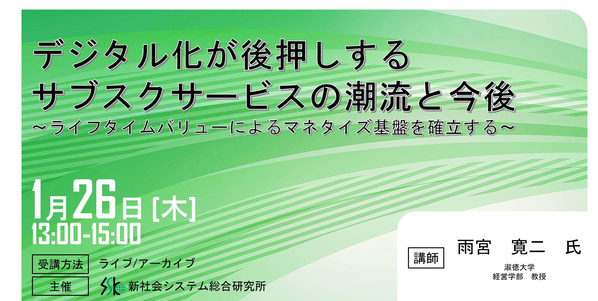 「サブスクサービスの潮流と今後」と題して、淑徳大学 経営学部 教授 雨宮 寛二氏のセミナーを2023年1月26日(木)に開催!!