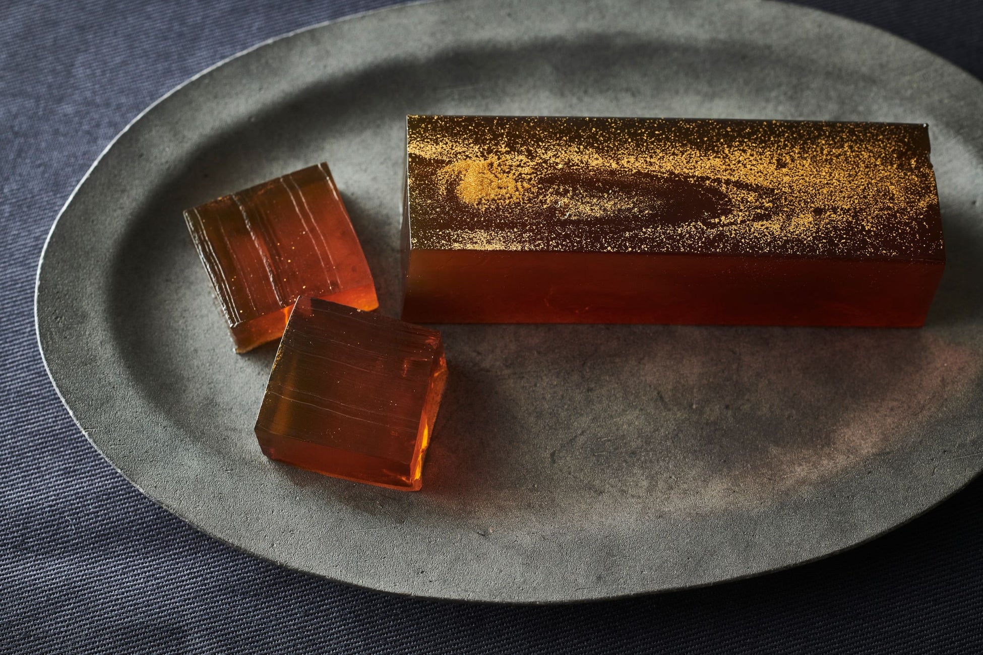 代々川越藩の御用を勤めた小江戸川越を代表する和菓子店<龜屋>は、世界的にも評価が高いウイスキー「イチローズモルト」を贅沢に使った錦玉羹を開発。モルトの琥珀色は国産和三盆糖のみを使用、甘すぎすコクのある味わいに仕上げました。