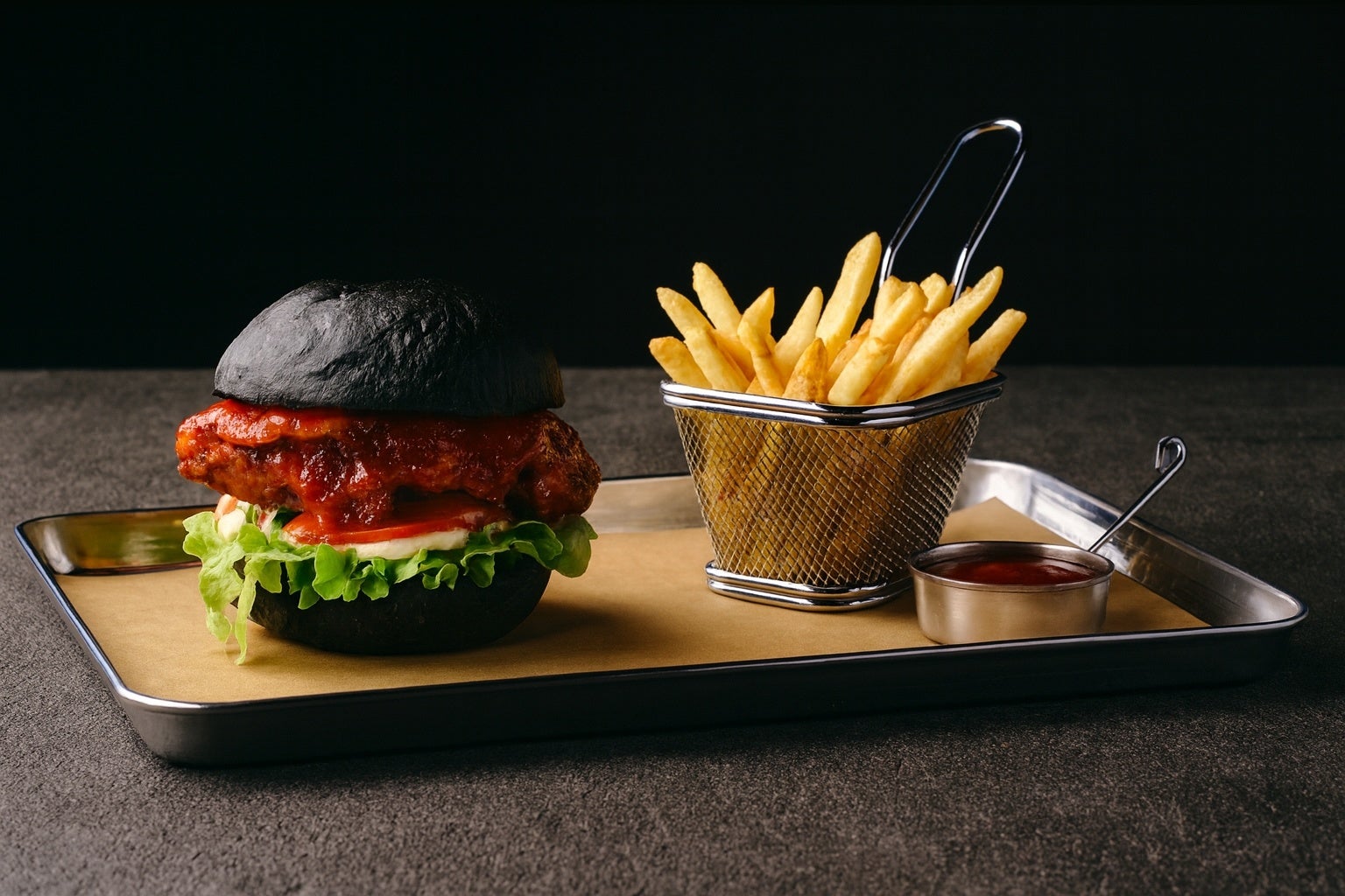 和歌山県産みかんどりの鶏もも肉を使用。スパイシー&スイートな特製レッドホットソースで仕上げ、ココア風味のブリオッシュバンズにサンドしました。