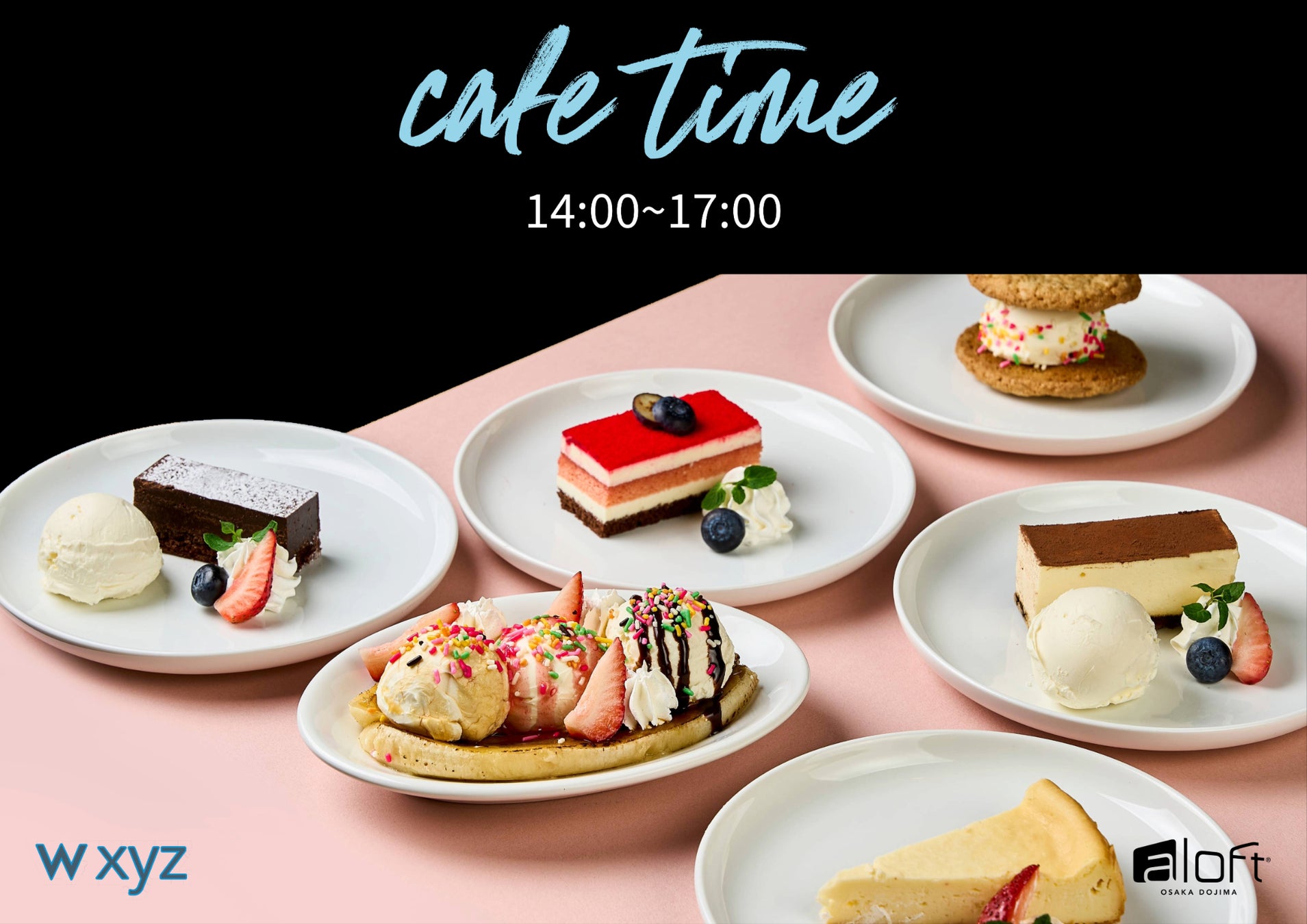 w xyz Bar「カフェタイムメニュー」6種類のデザートと共に、コーヒー、紅茶、ビール、ワインをお楽しみいただけます。