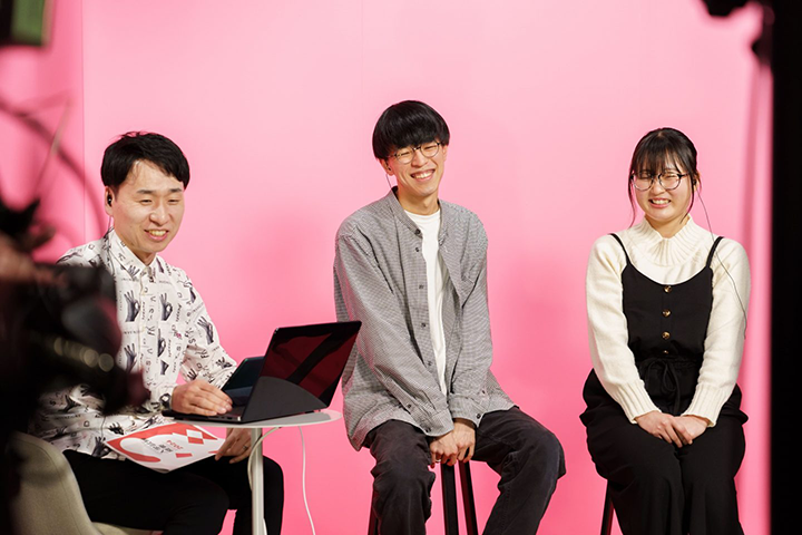 YouTube Liveでの開催となる「春のオープンキャンパス2024」を支えるのは、卒業生が起業し、在学生も多数参加する映像配信チーム「NOAH NAME」。プロ仕様の映像機材によるライブ中継で、受験生のみなさんのクリエイティビティを刺激します。