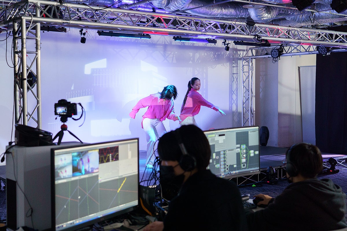 春のオープンキャンパスでは例年、在学生クリエイターを起用し、オープンキャンパスの常識を覆すようなステージ演出を行なっています。昨年(2023年)はダンス×インタラクティブアート×AIを複合したパフォーマンスを披露しましたが、今年も新たな演出を予定しています。