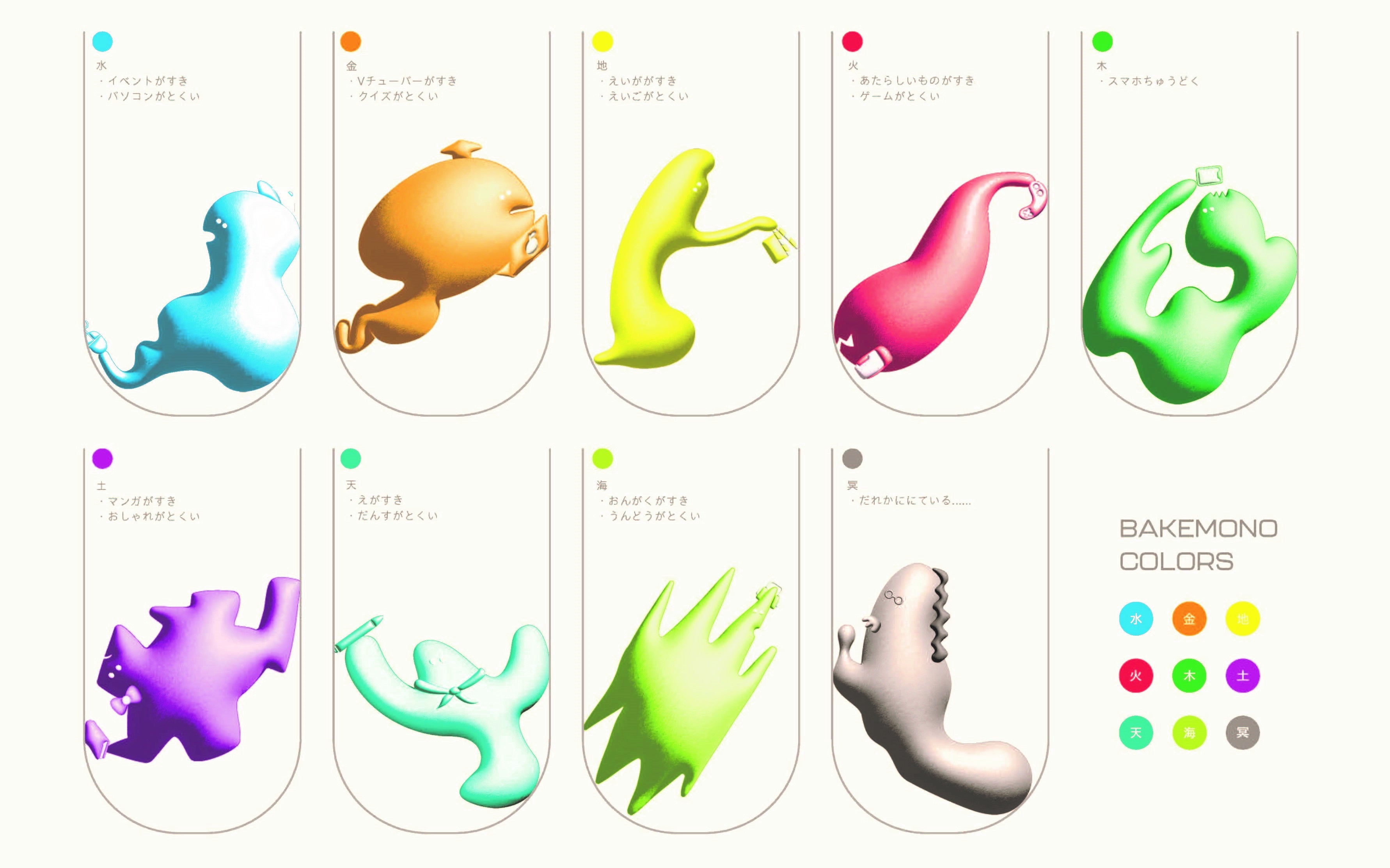 9匹のバケモノから構成されており、各キャラクターのオリジナルグッズも展開予定。是非オープンキャンパスに参加して"推し"のグッズを集めてください。