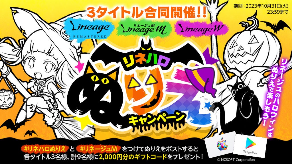 「リネージュ」×「リネージュM」×「リネージュW」3タイトル合同企画「リネハロぬりえキャンペーン」を開始しました。