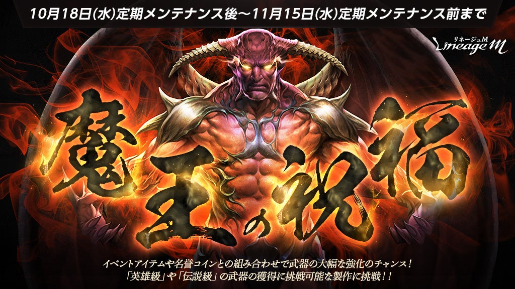『リネージュM』武器のグレードアップが行えるチャンス!イベント「魔王の祝福」スタート!『リネージュ』×『リネージュM』×『リネージュW』合同企画!「リネハロぬりえ」キャンペーンもスタート