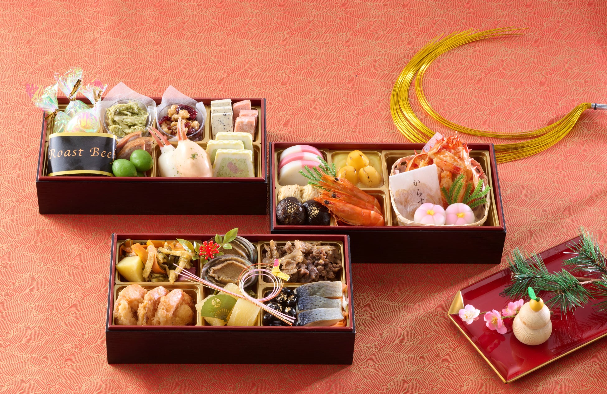 さらに、アワビやカニ、数の子などの高級食材から、エビやかまぼこ、栗きんとんなど“おせちの定番”の数々、ローストビーフをはじめとする本格的な「洋風おせち」もお楽しみいただける3段重となりました!