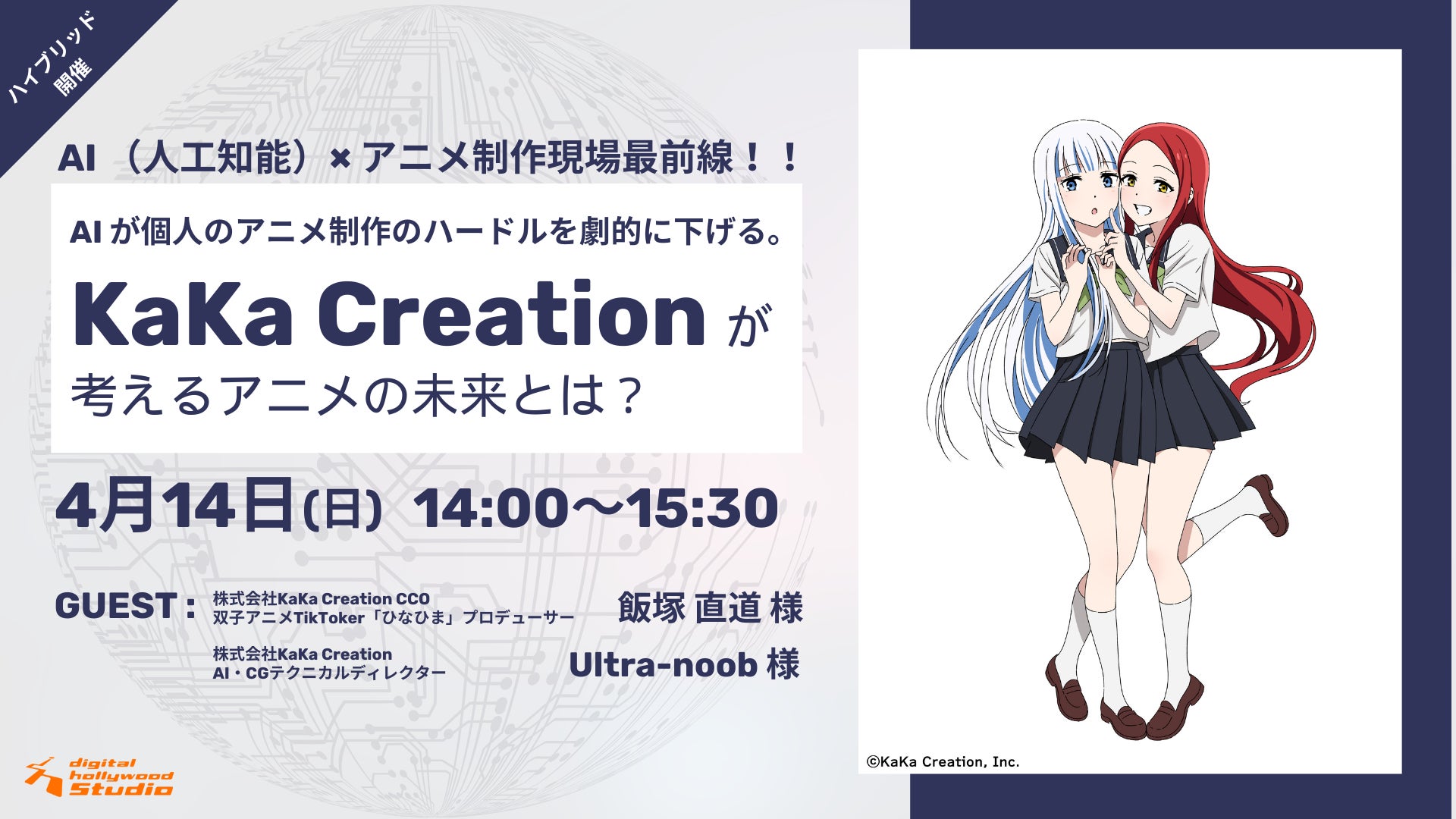 ChatGPT、Adobe Firefly、Stable Diffusionなど、多くの生成AIが登場し、クリエイティブ業界に大きな影響を与えています。今後のクリエイティブを揺るがすと言われているAIを積極的に活用し、「サポーティブAI」という概念のもと、アニメコンテンツにAIを取り入れたプロジェクトを推進している株式会社KaKa Creationをお招きし、今回セミナーを開催する運びとなりました。