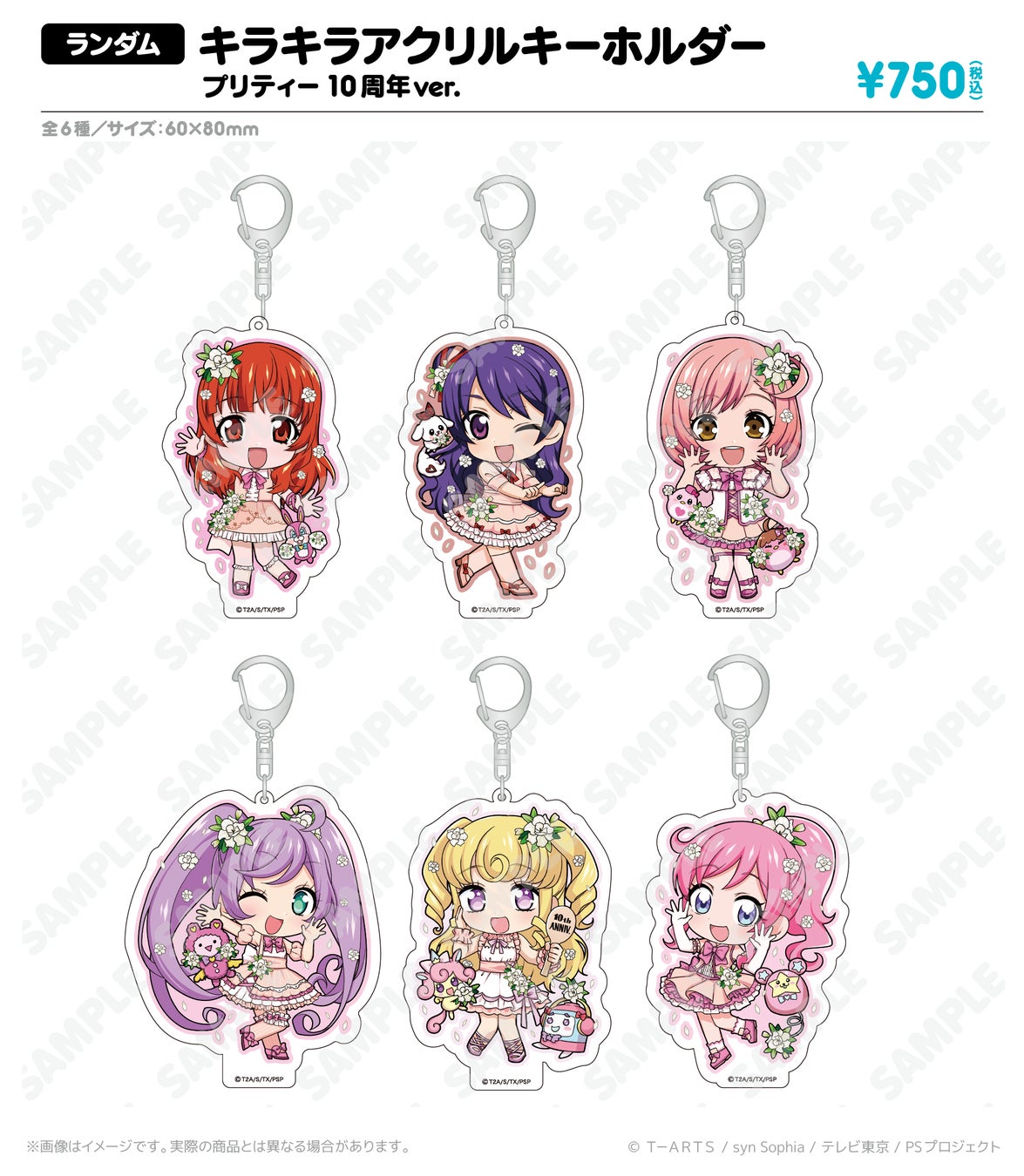 【ランダム】キラキラアクリルキーホルダー 描き下ろしプリティー10周年ver.:全6種 ¥750