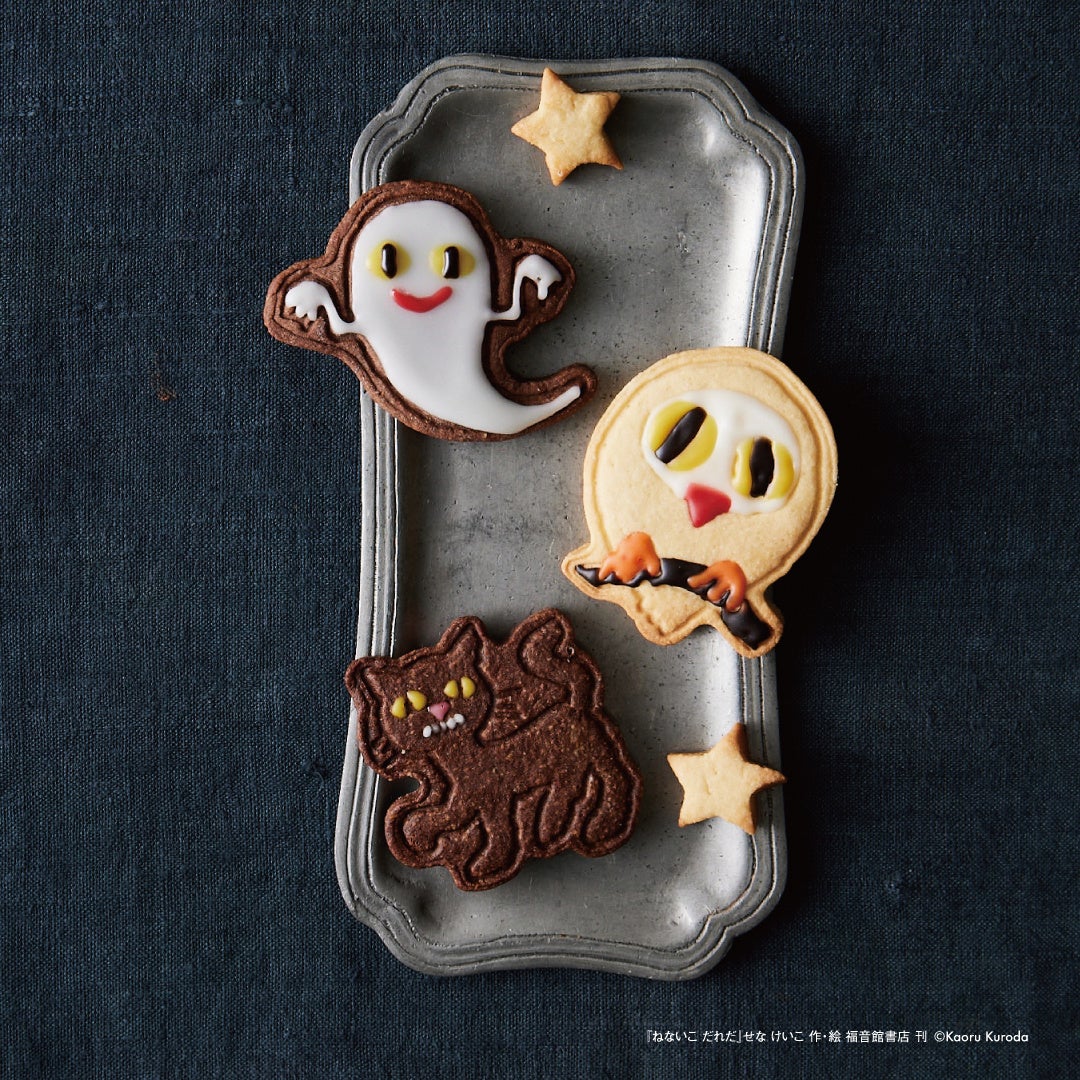 今回のアイテムは、絵本に登場するおばけたちの料理用抜き型とスタンプのセットです。生地に押し当てて型抜きクッキーを作ったり、ごはんを押し詰めておばけ弁当にしたりすれば、お子さまの好奇心をそそるメニューが完成。親子でのクッキングも楽しめます。