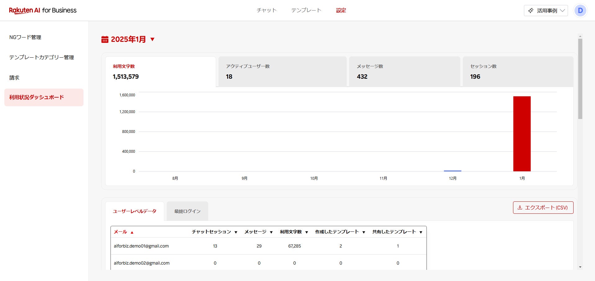 「Rakuten AI for Business」は楽天グループでの活用実績を基に設計された、ビジネスパーソンが使用しやすいシンプルで直感的に利用できるUIとなっています。