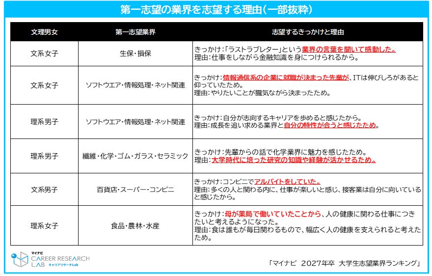 「マイナビ 2027年卒 大学生志望業界ランキング」