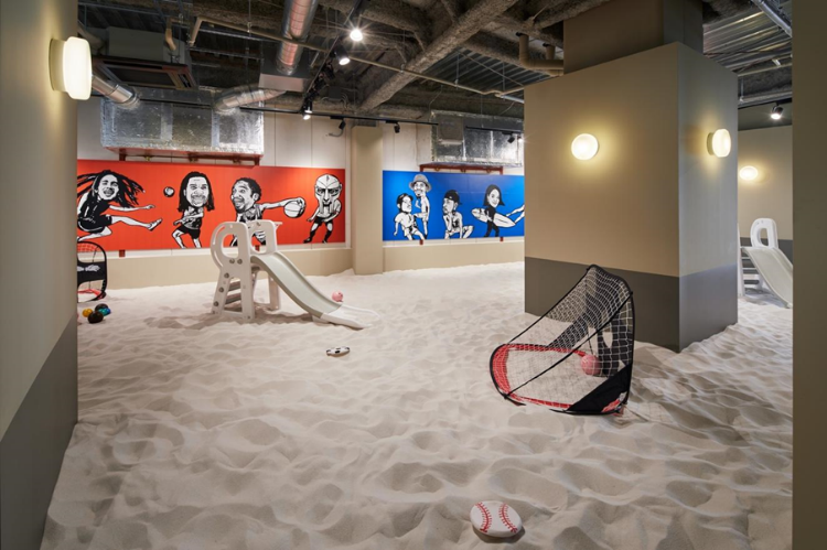 子どもの遊び場だけではなく、大人のヨガスクールや体幹トレーニングにも使える広さです。