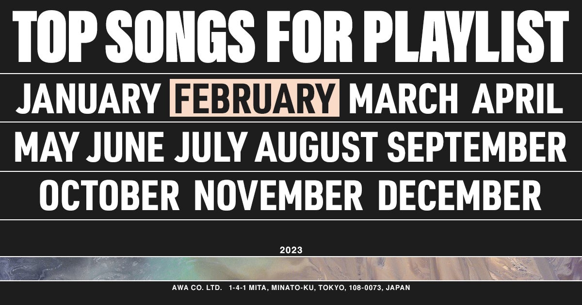 AWA株式会社(本社:東京都港区、代表取締役CEO:冨樫晃己)が運営する、サブスクリプション型(定額制)音楽ストリーミングサービス「AWA(アワ)」は、2023年2月1日(水)から2月28日(火)までに、ユーザーが作成したプレイリストへ採用された楽曲を集計し、2月度の『プレイリスト採用楽曲ランキング』を発表いたしました。