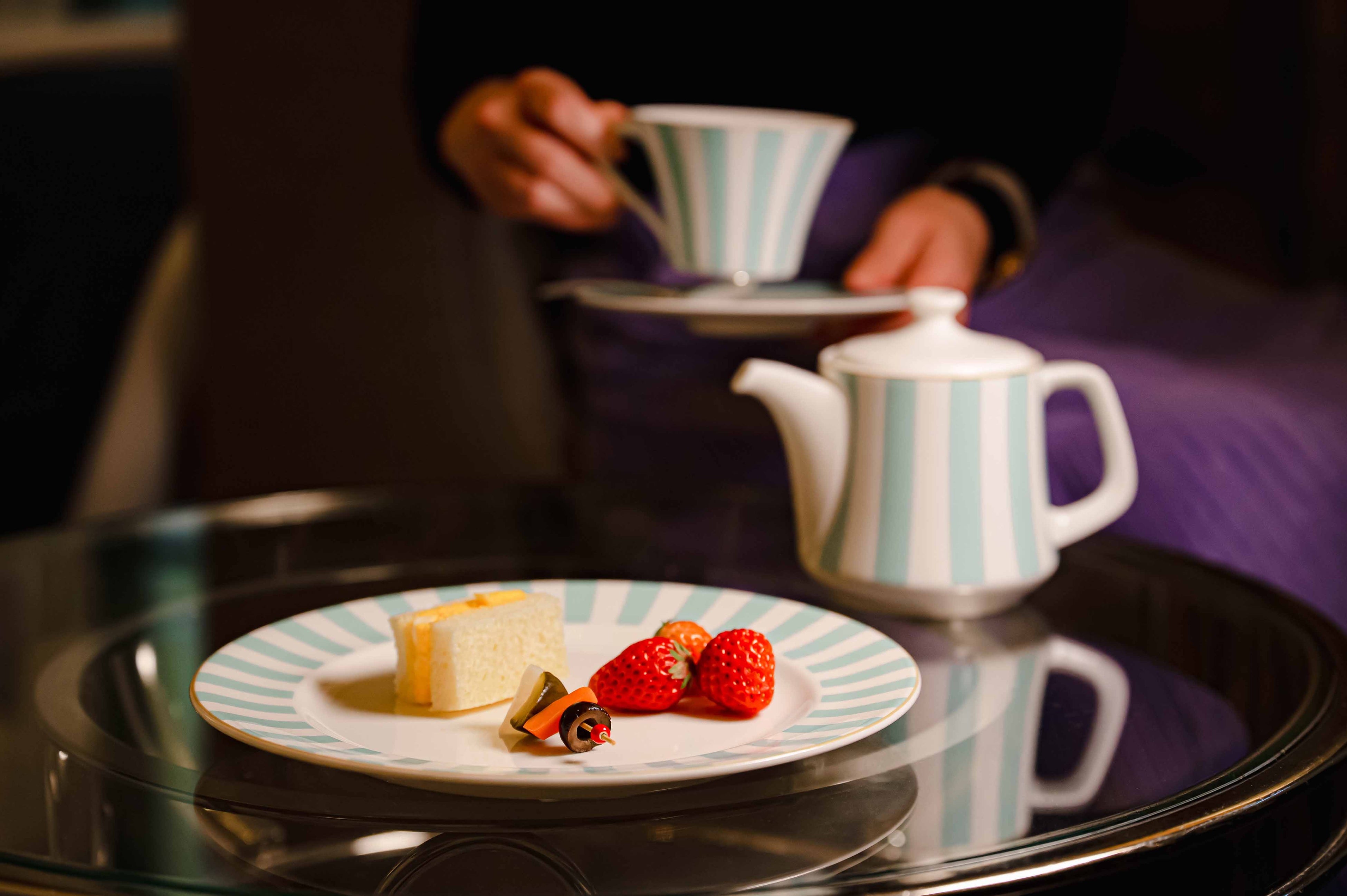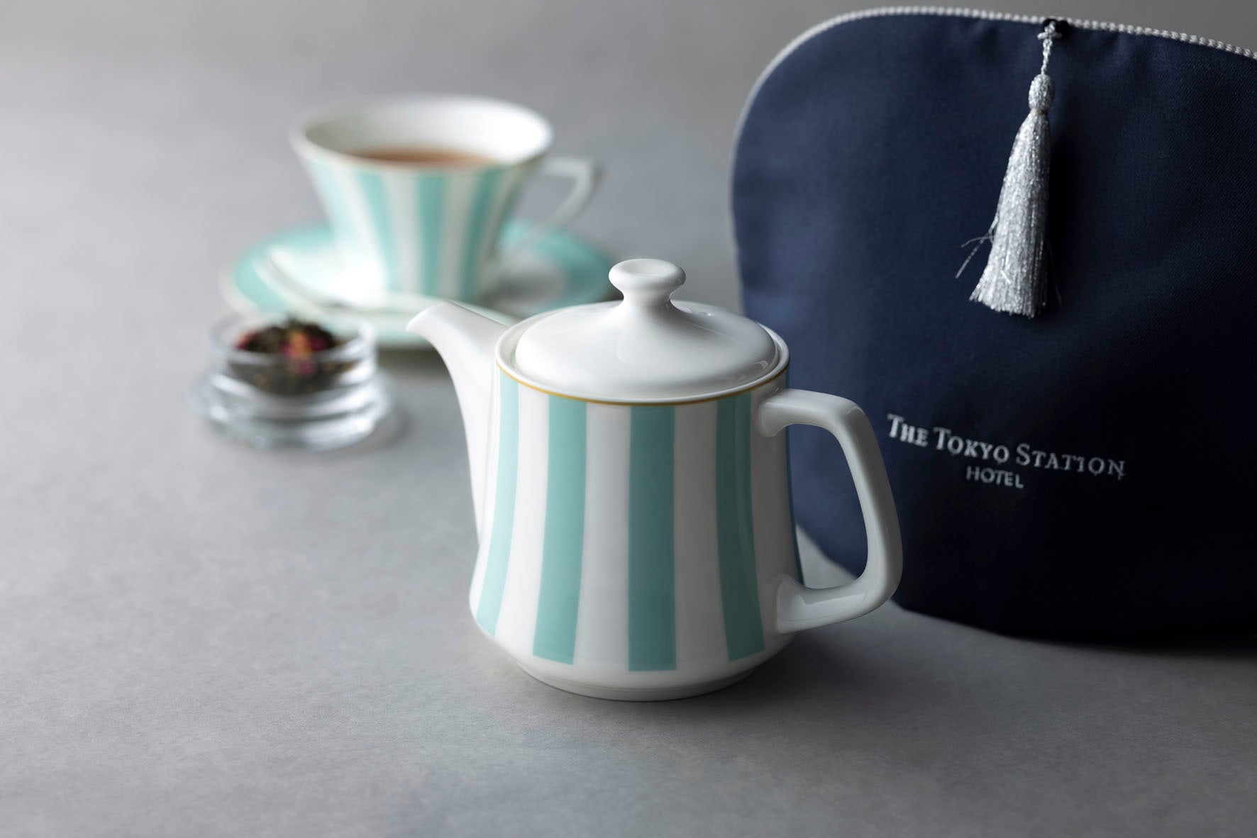 東京ステーションホテル(所在地:東京都千代田区丸の内1-9-1)のロビーラウンジにて、テーブルウェアとして長年愛されているミントブルーのストライプアイコン。このたびその爽やかなミントブルーの「オリジナル デザートプレート」を、公式オンラインショップにて、4月25日(土)より販売開始いたします。
