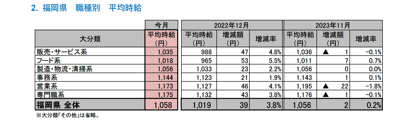 [福岡県版]2023年12月度 アルバイト・パート募集時平均時給調査 福岡県の12月度平均時給は前年同月より39円増加の1,058円