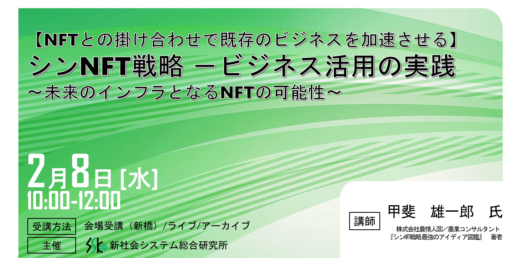 「シンNFT戦略 -ビジネス活用の実践」と題して、株式会社農情人CEO/農業コンサルタント/『シンNFT戦略 最強のアイディア図鑑』 著者 甲斐 雄一郎氏のセミナーを2023年2月8日(水)に開催!!