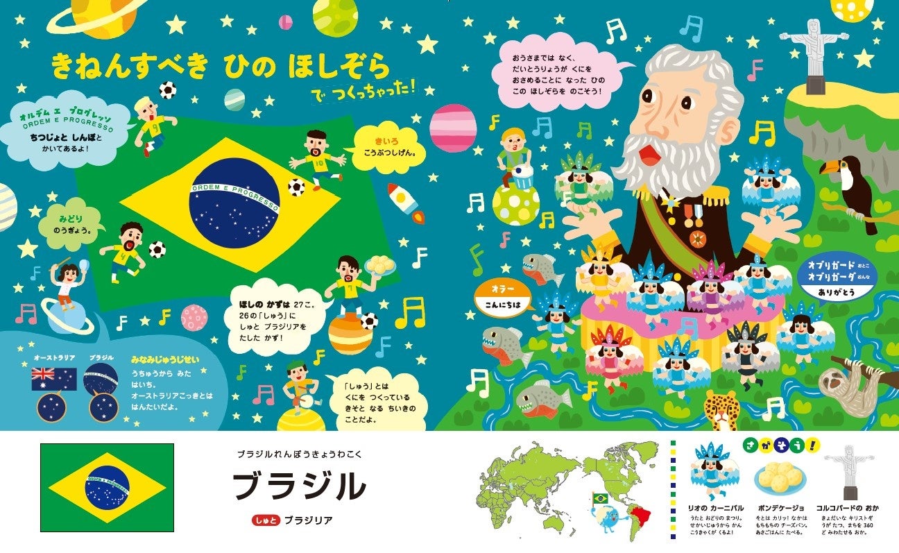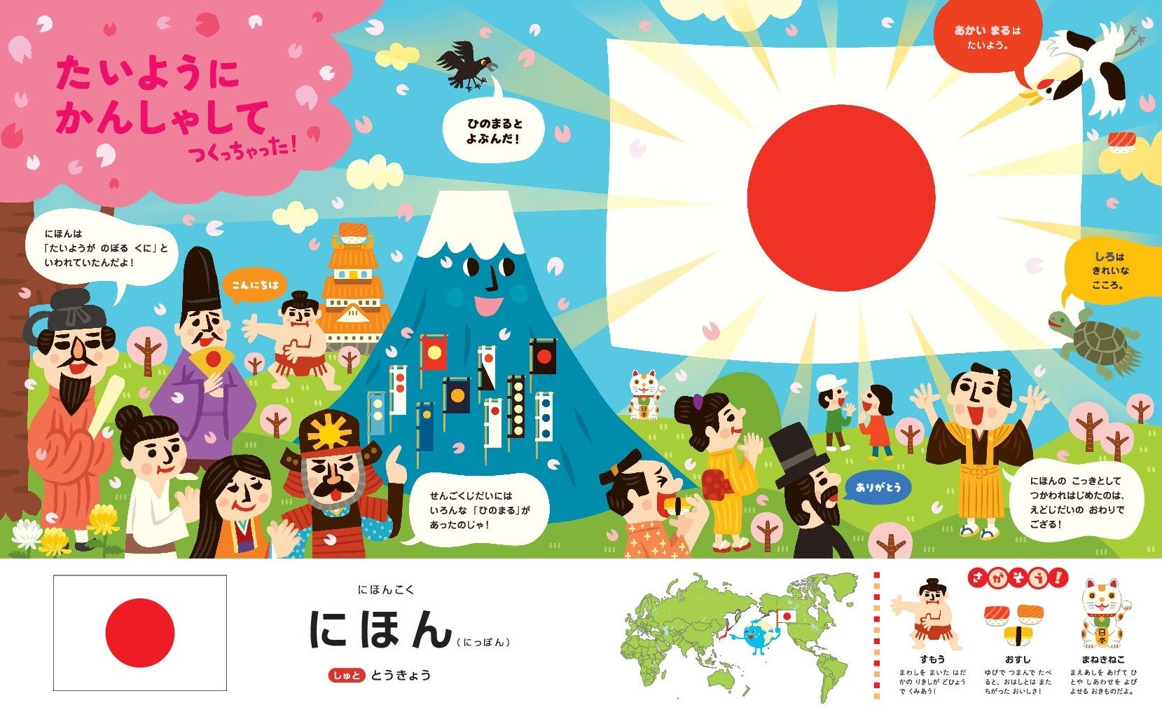 イラストを見ただけで国旗のなりたちがわかるダイナミックでワクワクするイラストが本書の一番の魅力。読み聞かせはもちろんのこと、幼児でもひとりで楽しめるよう、やさしくわかりやすい言葉で解説しています。