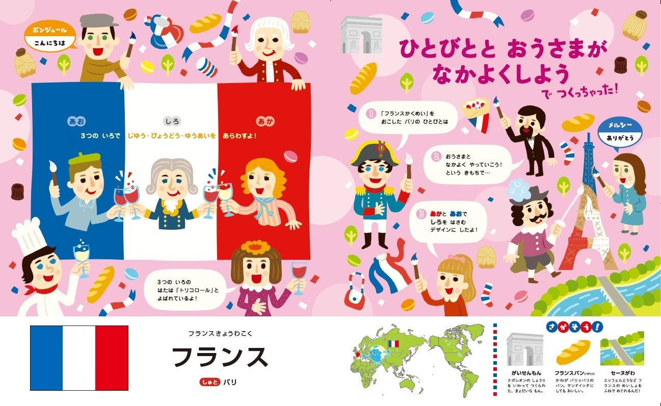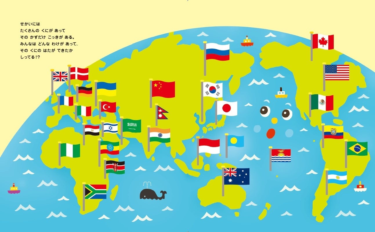 『そんなわけで国旗つくっちゃいました!えほん』は、オリンピックなどのスポーツイベントや日々のニュースなどで、なんとなく国の名前や国旗を見知っている子どもたちをターゲットにつくられています。「なんとなく」こそが視野が広がる出発点。どんな理由があっていまの国旗ができたのかを楽しいイラストとやさしい言葉で学ぶことから、世界への興味が広がってほしいという願いを込めました。