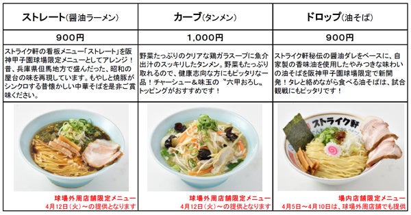 ・ストライク軒NOODLE STUDIO(球場外周店舗・入場券不要):4月5日(火)