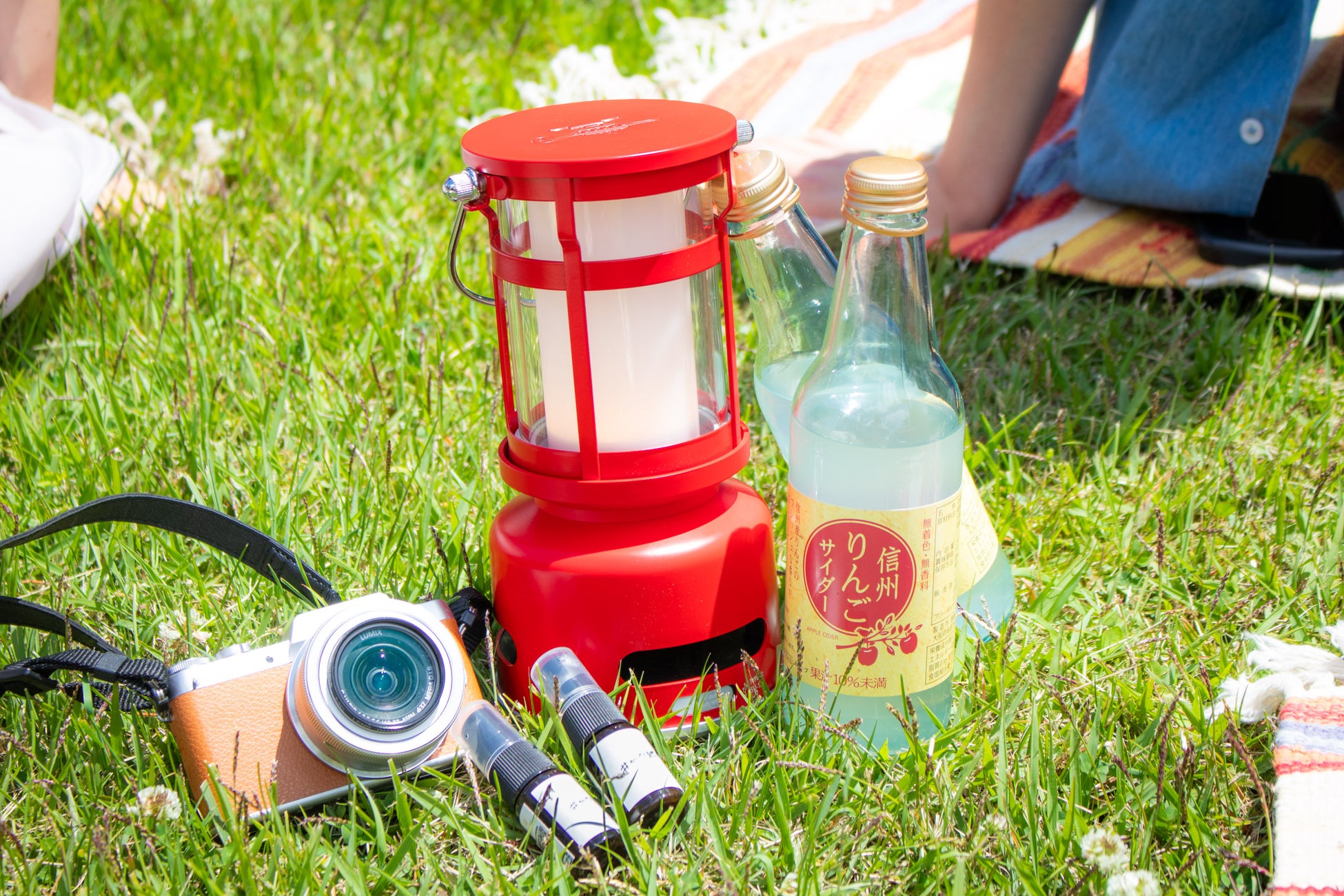 アラジンの定番「ブルーフレーム」をイメージ。アウトドアでも使えるランタンスピーカー。Bluetoothでお持ちのデバイスに接続してお好みの音楽を聴いたり、ランタンを片手に避暑地ならではの涼しい自然の中を散歩するのもおすすめです。