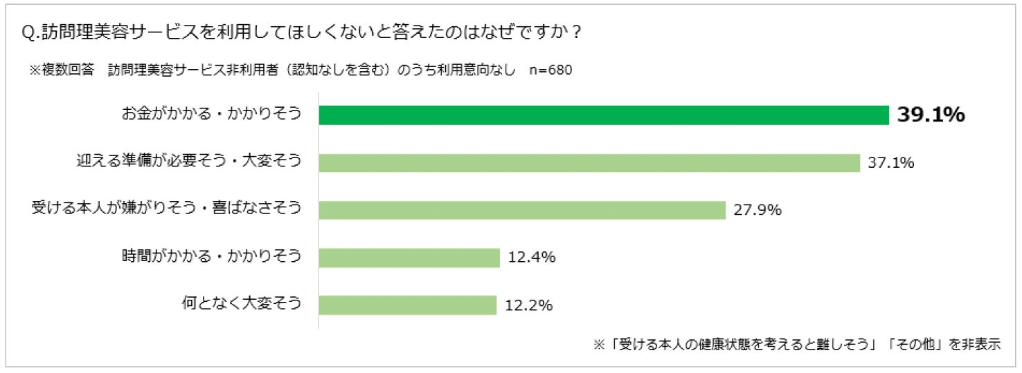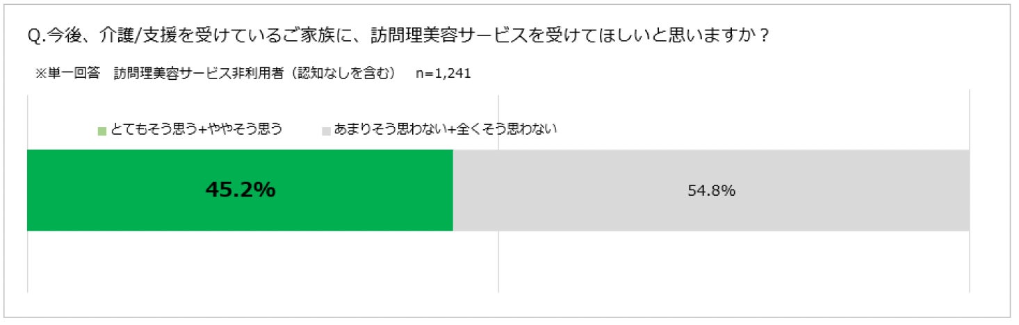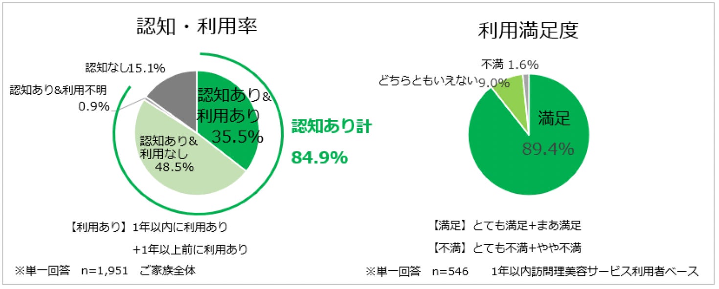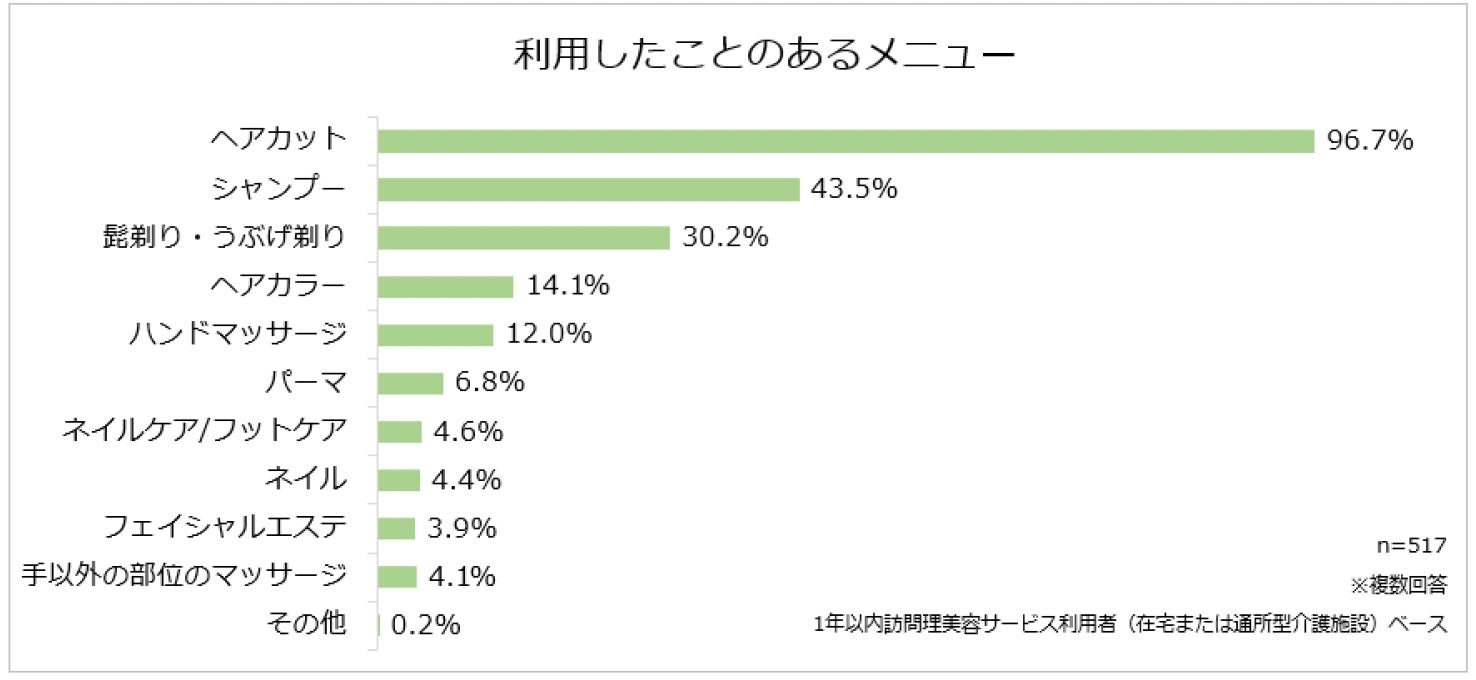 ※ 自宅や介護・福祉施設に理美容師が訪問し、ヘアカットなどの理美容メニューを実施するサービス。要支援者・要介護者の認定を受けた方など、外出が困難な方が対象です。調査は在宅の要支援者・要介護者のご家族、およびケアマネジャーが回答。