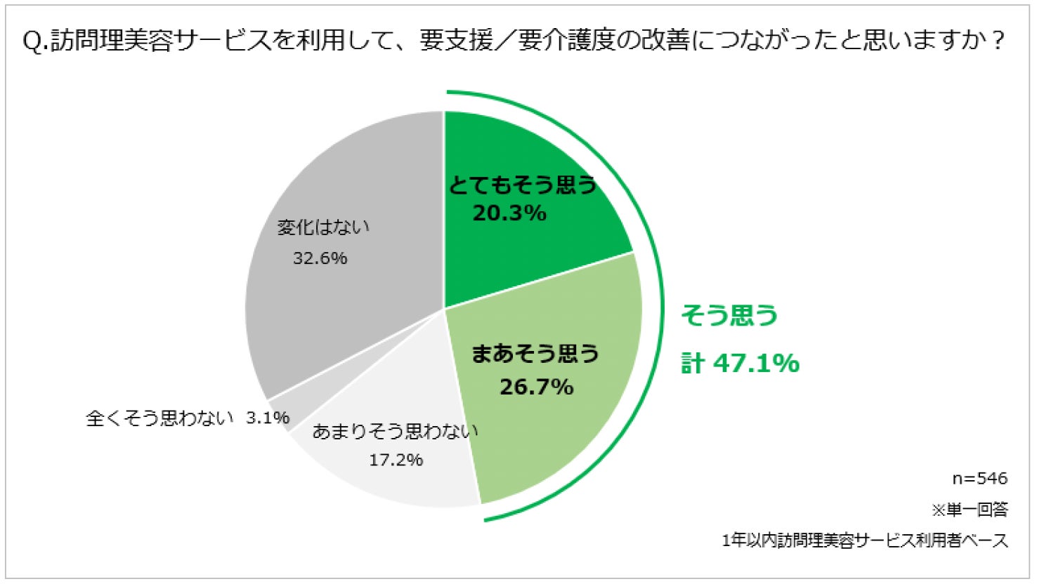 直近1年以内の訪問理美容サービス利用率が上昇し、28.0%へ。利用者家族の47.1%が訪問理美容サービスによる介護状態の改善を実感