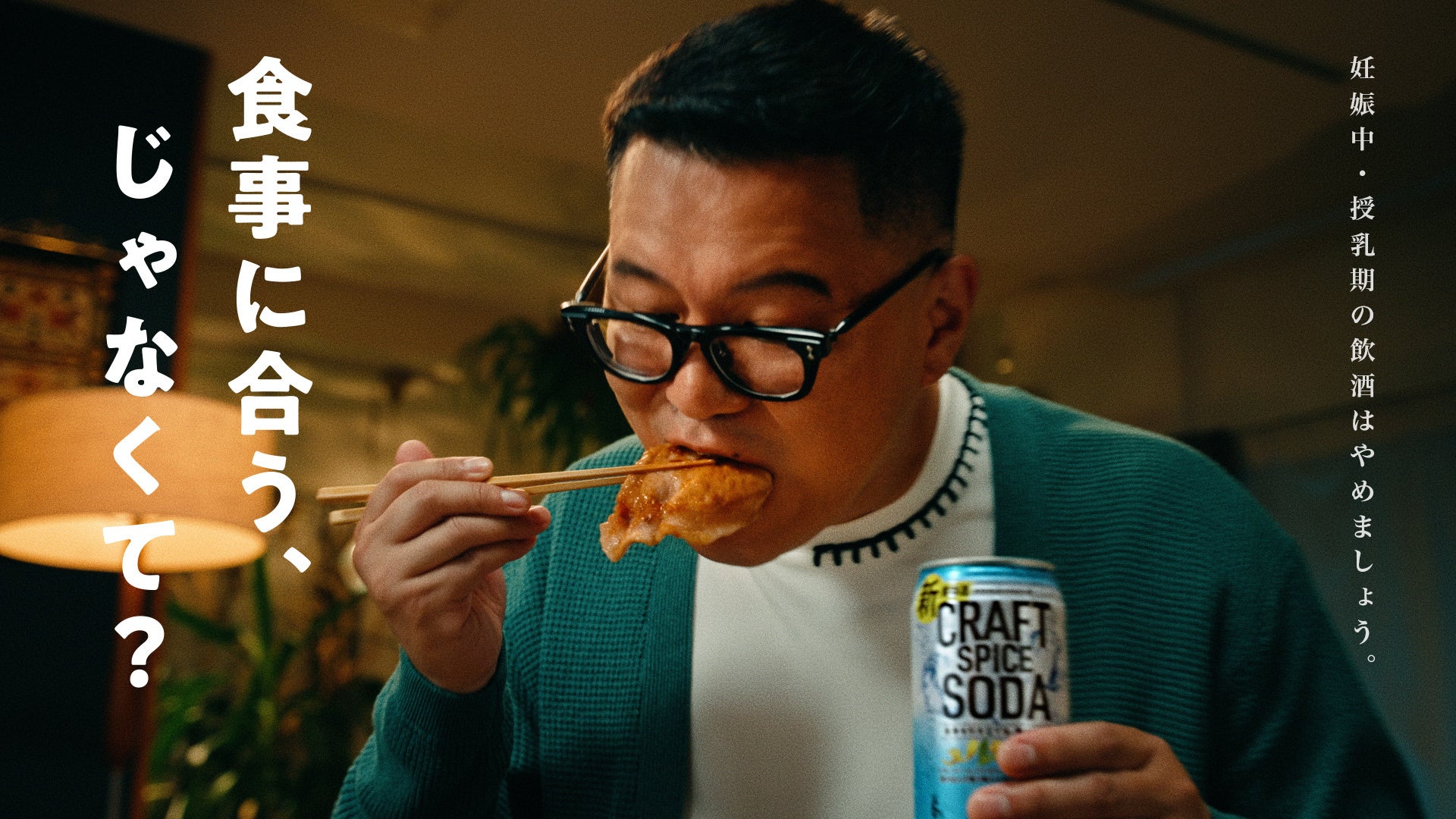 お笑い芸人シソンヌのじろうさんと長谷川さんが夫婦役を演じ、夫役の長谷川さんが「食事を“引き立てる”お酒?食事に合うじゃなくて?」と「サッポロ クラフトスパイスソーダ」が気になっているシーンからスタート。妻役のじろうさんは夫のおいしそうな表情を見ると恍惚を覚えるという、シソンヌらしいクセのある裏設定で、長谷川さんがおいしそうに「サッポロ クラフトスパイスソーダ」を飲む様子を“引き立て”ます。思わず「いいCM!」と自分で言ってしまったり、ちょっと長めの商品名を絶叫する自由なじろうさんにご注目ください。