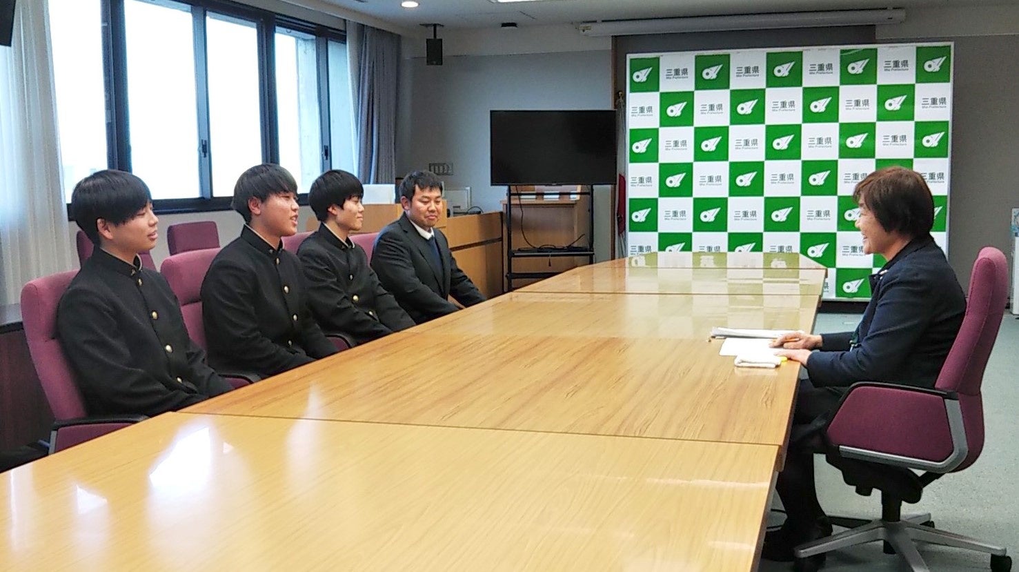 『スポGOMI甲子園2023・三重県大会』優勝チーム「バスターズ山本」津工業高校サッカー部の生徒が三重県の廣田知事を表敬訪問しました