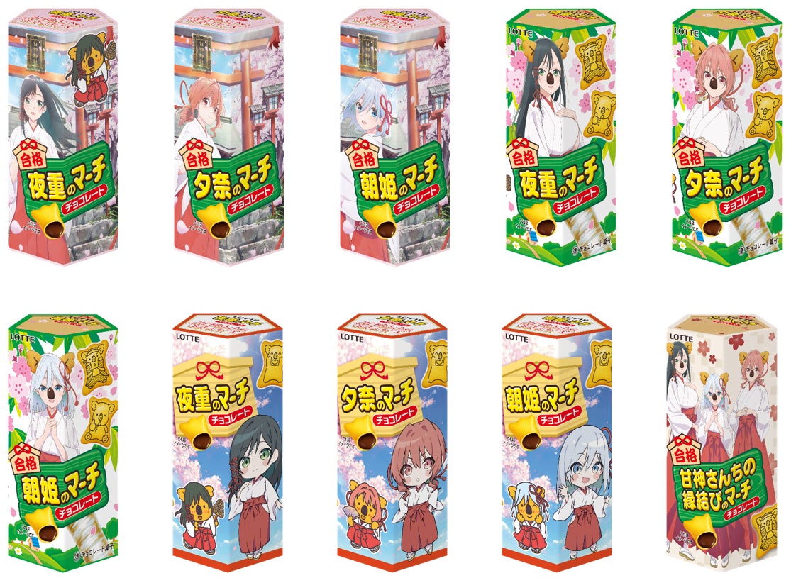 春の新生活をイメージした「ごーかくのマーチ<桜ver.>」のほか、TVアニメ『甘神さんちの縁結び』デザインの<甘神さんちの縁結びver.>も発売。ロッテオンラインショップにて、完全受注生産での販売となります。