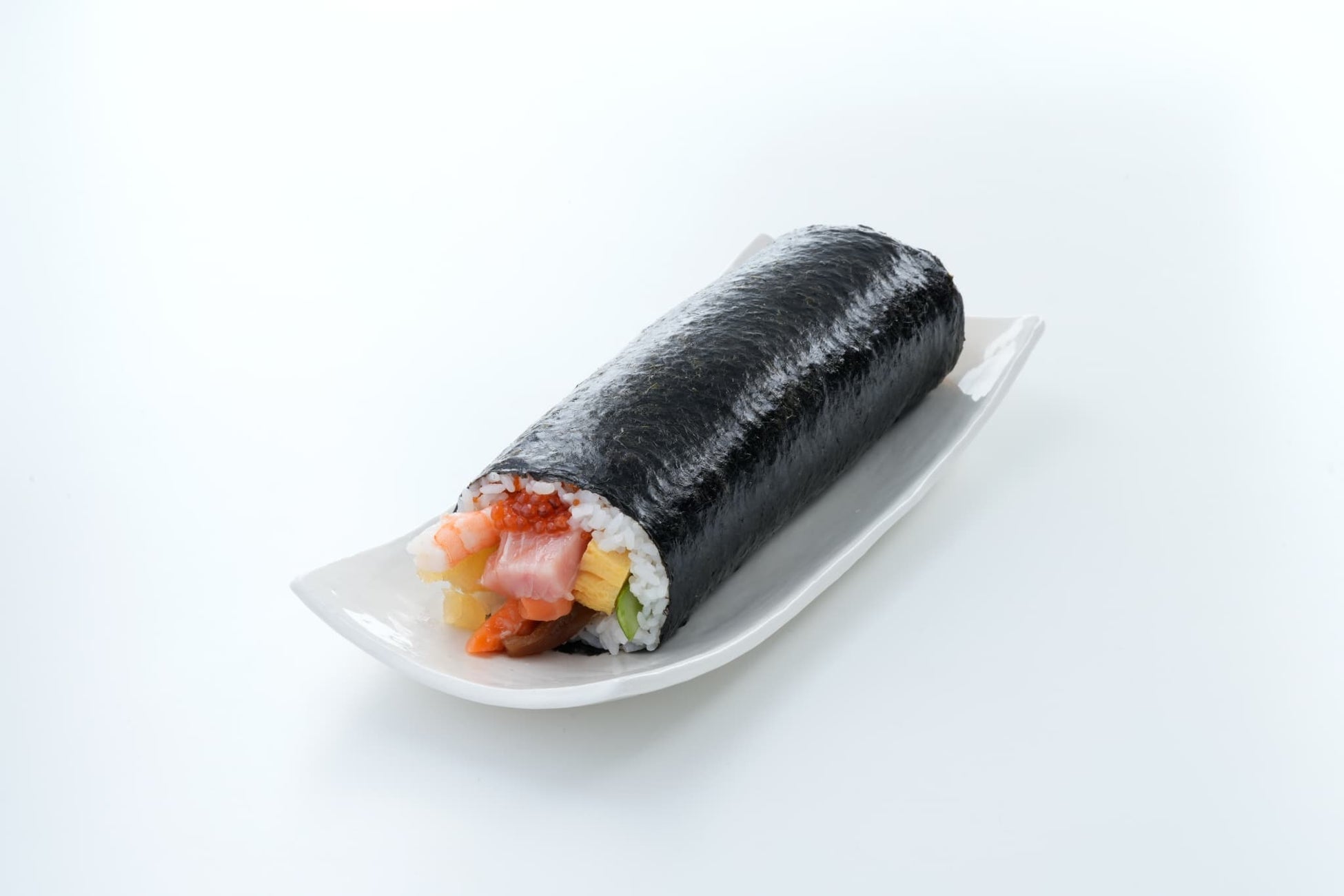 穴子、イクラ、数の子、エビ、とびっこ、明太子、きゅうり、しいたけ、かんぴょう、たまごと中身もぎっしり!ネタ、シャリ、高菜が一体となり、口の中に至福の幸福感が広がります。巻きが大きいので一口ごとに違った絶妙な味わいが楽しめます。