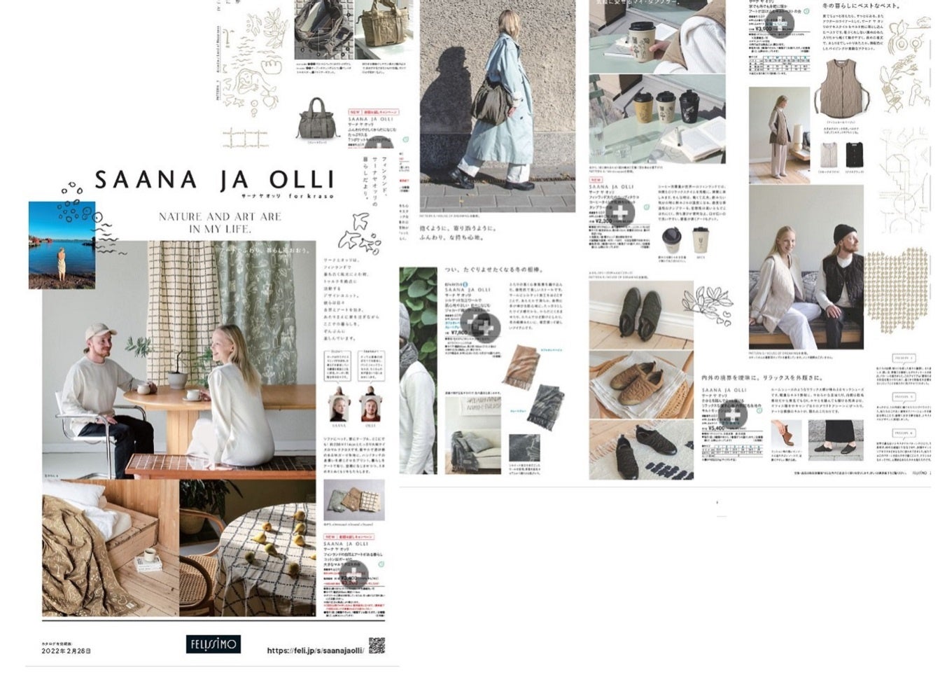フェリシモが展開する、フィンランド南西部の自然豊かな町トゥルクを拠点とする若手デザインユニット「SAANA JA OLLI[サーナ ヤ オッリ]」のテキスタイルデザインを用いた雑貨ブランド「SAANA JA OLLI for kraso」が新作を発表、12月4日より特集ページを公開し、ウェブ販売を行っています。模様替えに使いやすいコットンダブルガーゼのマルチクロスや、ふんわりとした持ち心地のキルトバッグなど、自然に囲まれた、フィンランドのくつろぎ時間を感じられるような、素朴でやさしいアイテムがそろっています。新作はウェブサイトでチェックできます。
