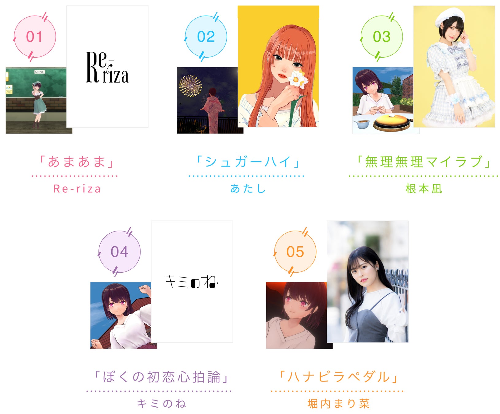体験シーンは全5曲で構成。女性アーティストグループ「Re-riza(リライザ)」とコラボし大人気配信中の楽曲『あまあま』ほか、今回のプロジェクトをきっかけに様々なアーティストとのコラボが新たに実現しました!作品の世界観と音楽のシンクロもお楽しみいただけます。